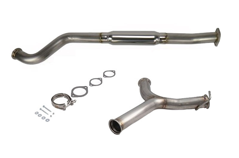 This mid pipe has been designed with high-grade stainless steel materials that will provide your vehicle with years of performance, and exhaust hangers are welded onto the stock location to make this exhaust component a direct fitment without the need to further modify the body or chassis. Additionally, exhaust gaskets, a v-band clamp, as well as the miscellaneous hardware will be included to make this mid pipe ready for installation.