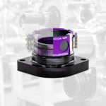 When building a Subaru race car one often overlooked component is the thermostat housing. The OEM housing can restrict coolant flow, which is a big problem when seeking maximum performance. The standard thermostat housing uses rubber hoses and standard worm-drive clamps. While this works OK on a street car, it's not the most reliable connection and requires tools for removal.