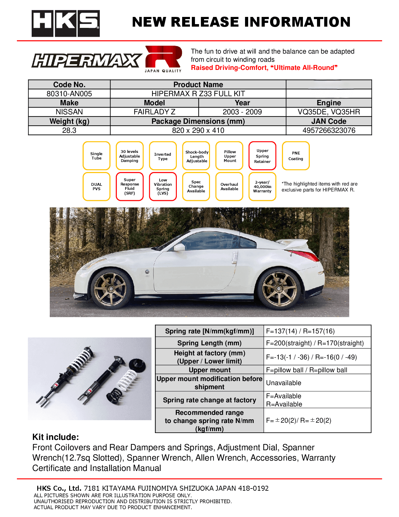 HKS Hipermax R Coilover Kit 2003-2008 Nissan 350Z (Z33)