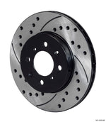 For custom, show and high performance sport driving, SRP rotors offer the high tech look and improved performance of a directional cross-drill and face slot pattern. In addition to the aesthetic appeal, the venting and cleaning action of the hole and slot pattern helps to reduce pad glaze and minimize irregular pad build-up on the rotor faces. The results are a smoother engagement feel at the pedal and consistent response from the pads. Each rotor is precision machined to less than .001 tolerance for overall flatness, parallelism, and radial run-out on long grain carbon iron castings. The rotors are finished with a black electro coat to provide corrosion resistance.