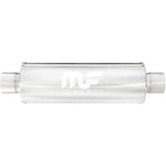 The MagnaFlow 4in. Round Straight-Through Performance Exhaust Muffler 10419 brings our world-famous exhaust sound and dyno-proven performance to your ride in a weight-optimized 4x9x14in. package with a premium satin finish. The straight-through free-flowing design of this round-bodied muffler's reversible, universal 3/3in. diameter inlet/outlet layout enables versatile installation options to match the spacing requirements of your vehicle. Due to the cutting and welding involved, professional installation is highly recommended. Internally, 10419 utilizes a perforated stainless steel core wrapped in stainless steel mesh and acoustic fiber fill to achieve a powerful, resonant tone. This muffler is made of durable, corrosion resistant stainless steel and produced using cutting-edge CNC precision robotic manufacturing techniques, all backed by MagnaFlow's limited lifetime construction warranty.