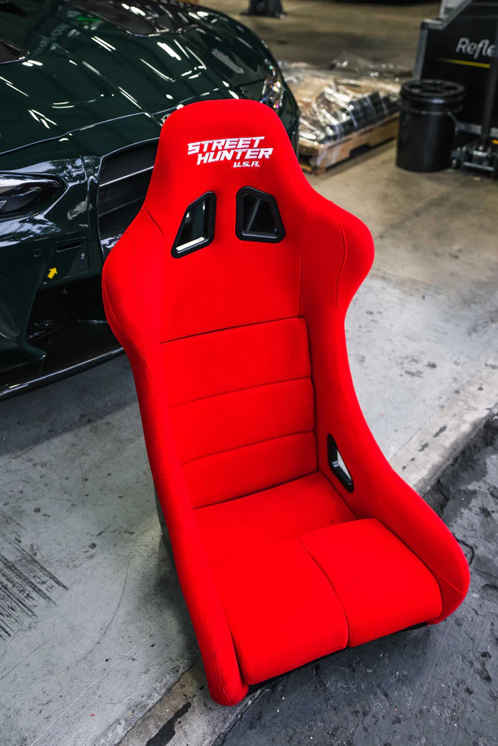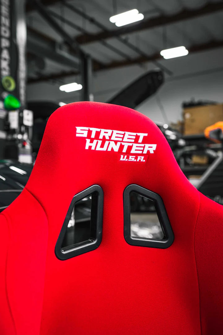 The new StreetHunter Designs Competition Seat is FIA 8855-1999 Certified for racing. The seat features low, tapered sides provide good containment, while making it easier to get in/out. Larger shoulder harness slots are added allow room for fresh air hose along with angled lap belt slots to provide the proper angle to install lap belts.