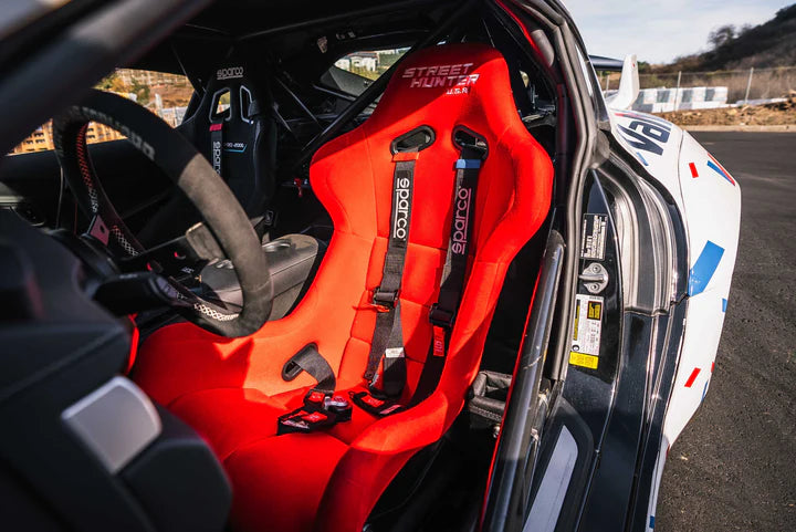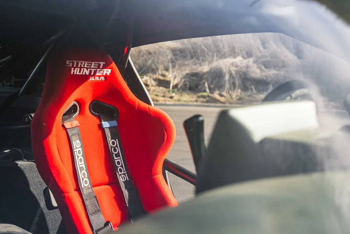 The new StreetHunter Designs Street Seat is the perfect way to reduce weight of your oem seats while giving a more immersive driving experience. The unique angled containment allows the seat to fit in a wide arrange of vehicles (including smaller vehicles) while still fitting drivers up to waist size 36″