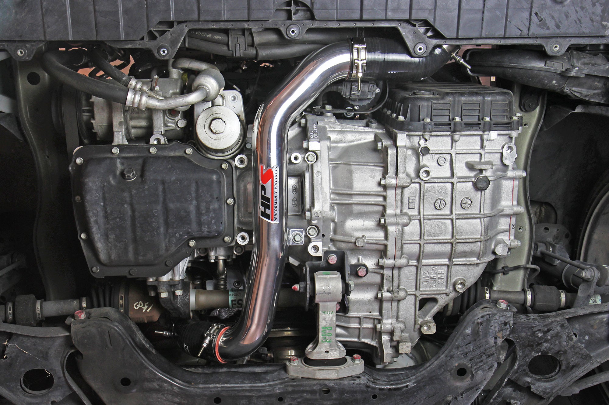 2-1/2" light weight mandrel-bent aluminum alloy piping replaces the stock restrictive piping. Bead rolled pipe ends prevent couplers from popping off under boost.