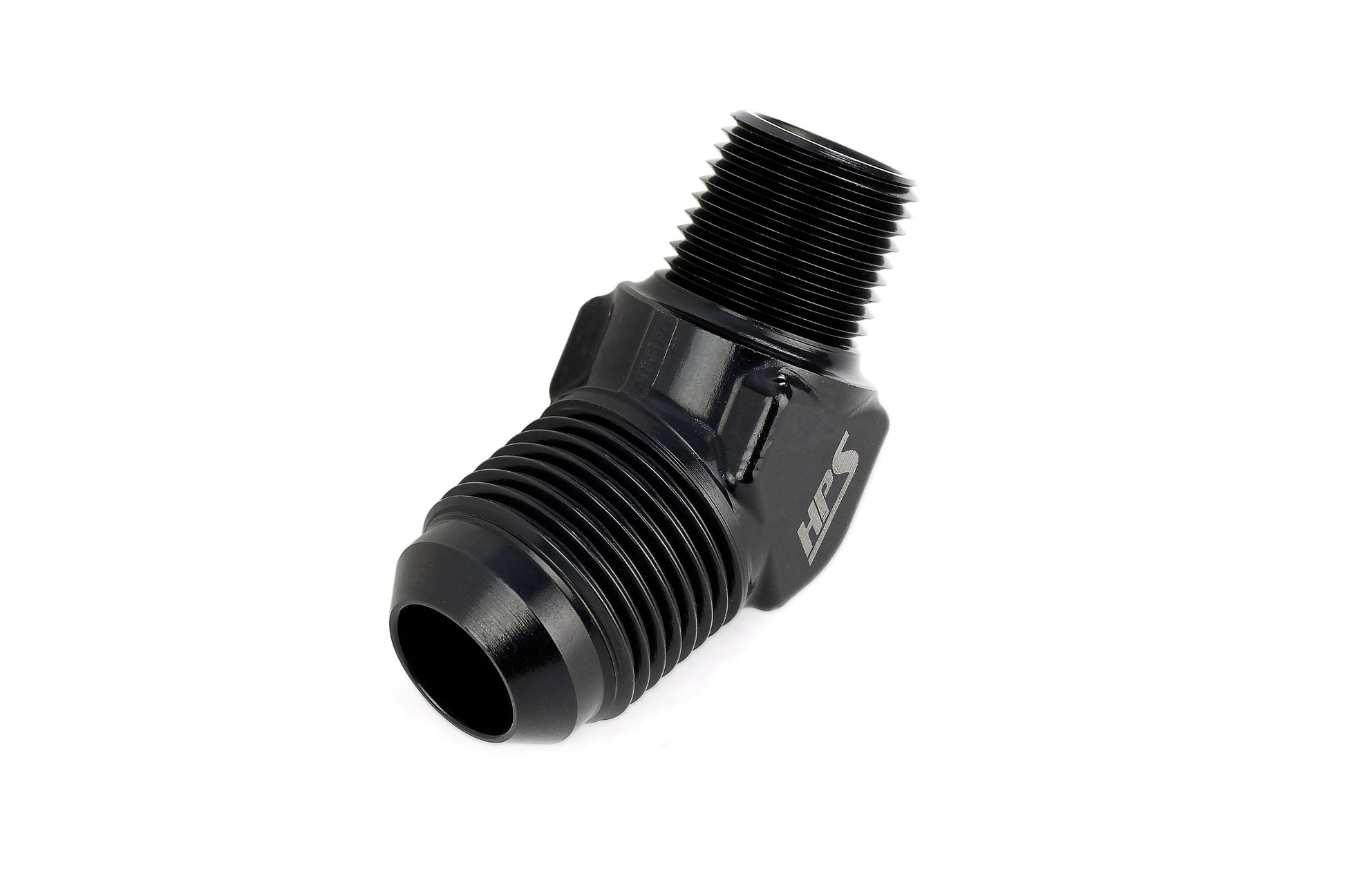 NPT threads are widely used in automotive applications. However, they are not intended for repeated servicing. HPS AN to NPT Adapter fittings convert your female NPT threaded ports to AN style fitting for easy serviceability. AN style fittings can be installed and removed many times without using any additional sealants or gaskets, whereas barbed fittings and clamped-on hoses can be damaged after repeated use. HPS AN to NPT adapters are made from 6061 aluminum and Type II anodized black to provide improved abrasion and corrosion resistance.