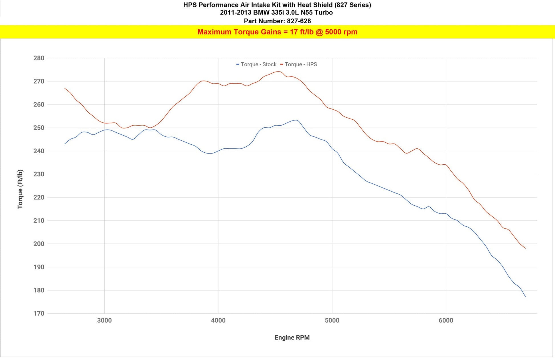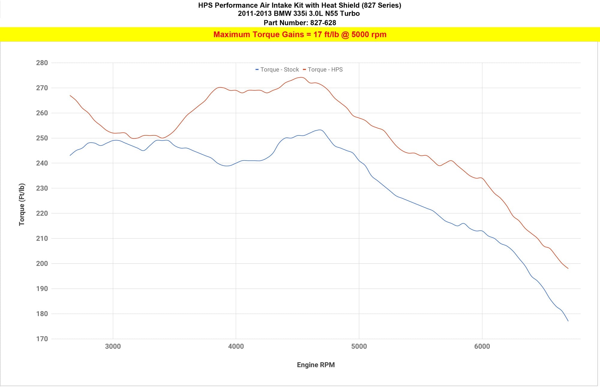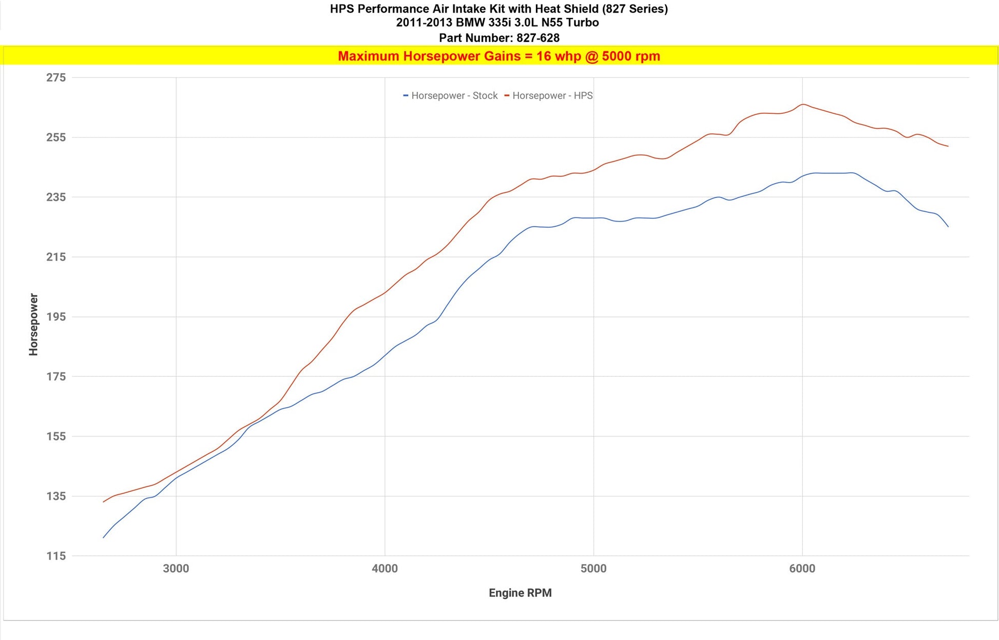 HPS Performance Air Intake Kits are designed with style and performance in mind. This HPS Performance Air Intake Kit replaces the factory intake and air filter housing with a 3" custom mandrel-bent aluminum tube and heavy duty powder coated heat shield designed to maximize the performance of your vehicle. It includes a reusable high-flow cotton air filter to provide maximum airflow to increase your engine's output by up to16 horsepower and 17 lb-ft. of torque for power you can feel through improved throttle response and acceleration. This kit includes both HPS 100% stainless steel embossed hose clamps and silicone coupler(s) that are engineered to withstand the toughest driving conditions. HPS Performance Air Intake Kits are designed and tested using the latest technology to ensure the best performance and fitment.