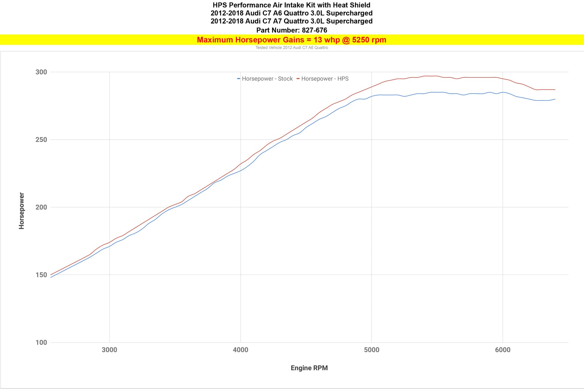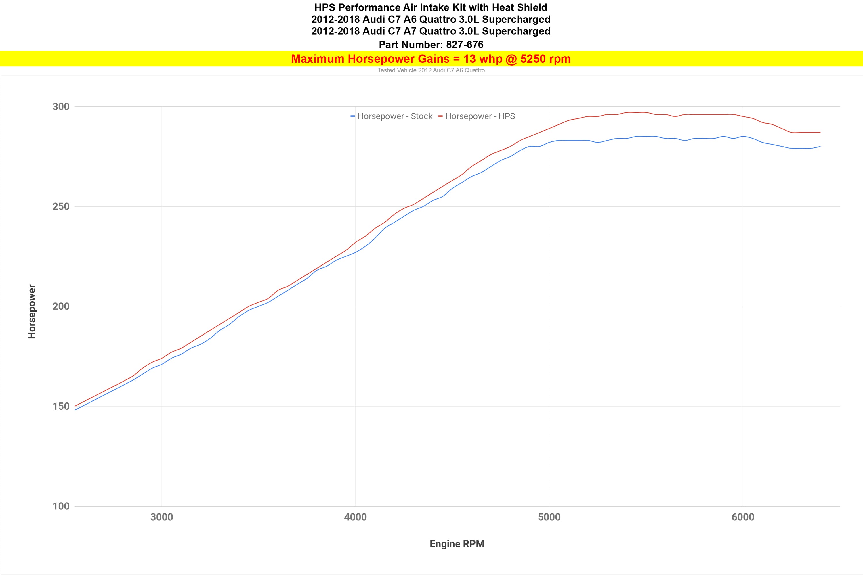 This HPS Performance Air Intake Kit offers a free-flowing 4" mandrel-bent aluminum tube induction system designed to produce dyno proven performance gains that add +13 horsepower and +13 lb-ft. of torque. Improve throttle response and acceleration while maintaining a safe air-fuel ratio. The heavy duty powder coated steel heat shield integrates with the factory fresh air ducting to direct cold air to the air filter. This intake kit does NOT require tuning and will not trigger CEL light. No modification is required during the installation. The light weight mandrel-bent aluminum alloy tube replaces the restrictive stock air box and optimizes air flow. This air intake kit also features high temperature resistant reinforced silicone hoses and 100% stainless steel T-bolt clamps for ultimate style and reliability, even during the most extreme driving conditions. The HPS Performance Air Filter included in this kit is designed for maximum air flow while delivering excellent filtering capabilities. This upgrade unleashes the beast with a more aggressive induction sound, adding power and punch to your drive.