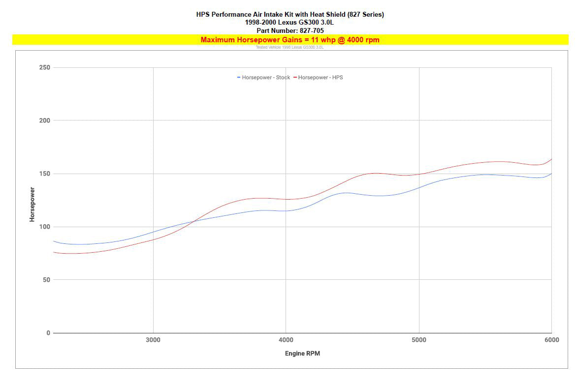 HPS Performance Air Intake Kits are designed with style and performance in mind. This HPS Performance Air Intake Kit replaces the factory intake and air filter housing with a 3" custom mandrel-bent aluminum tube and heavy duty powder coated heat shield designed to maximize the performance of this vehicle. Its reusable high-flow cotton air filter to provide maximum airflow to increase your engine's output by up to 11 horsepower and 14.4 lb-ft. of torque for power you can feel through improved throttle response and acceleration. This kit includes HPS 100% stainless steel T-bolt clamps and a silicone reducing coupler that are engineered to withstand the toughest driving conditions. HPS Performance Air Intake Kits are designed and tested using the latest technology to ensure the best performance and fitment.