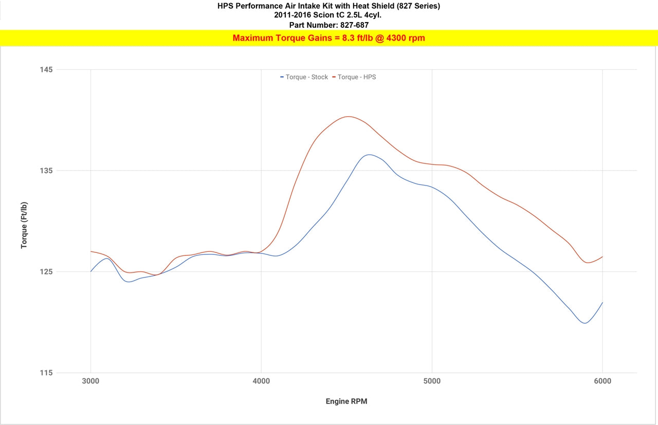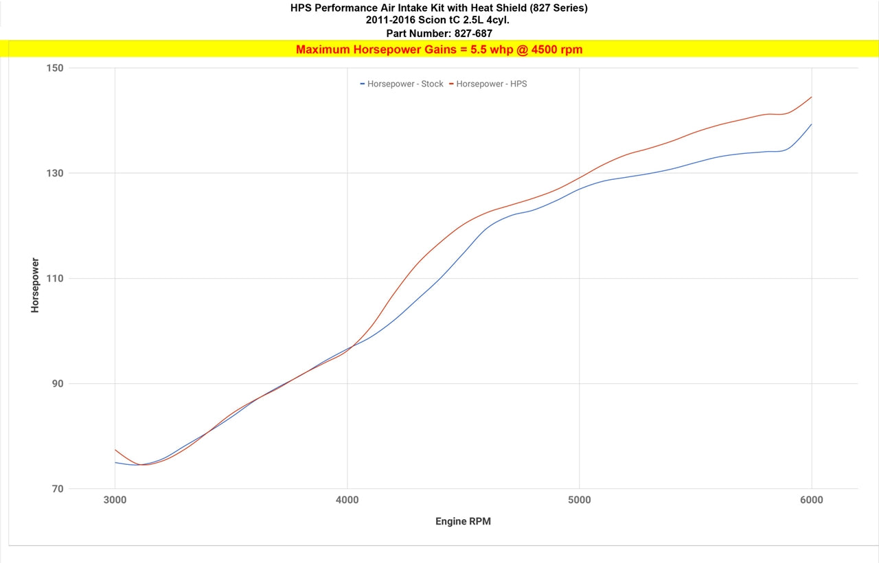 HPS Performance Air Intake Kits are designed with style and performance in mind. This HPS Performance Air Intake Kit replaces the restrictive factory intake and air filter housing with a 3" custom mandrel-bent aluminum tube and heavy duty powder coated heat shield designed to maximize the performance of your vehicle. It includes a reusable high-flow cotton air filter to provide maximum airflow to increase your engine's output by up to 5.5 horsepower and 8.3 lb-ft. of torque for performance that you can feel through improved throttle response and acceleration. This kit includes HPS 100% stainless steel T-bolt clamps and a 3-ply reinforced silicone coupler, both engineered to withstand the toughest driving conditions. HPS Performance Air Intake Kits are designed and tested using the latest technology to ensure the best performance and fitment.