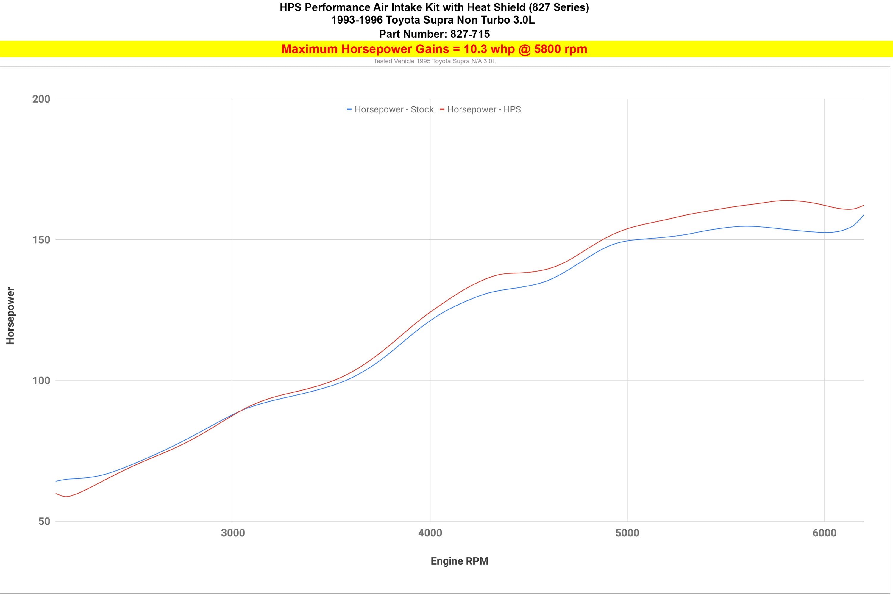 HPS Performance Air Intake Kits are designed with style and performance in mind. This HPS Performance Air Intake Kit upgrades your old or damaged stock intake tubing and air filter housing with a 3" mandrel-bent aluminum tube designed to fit your vehicle and includes a reusable high-flow cotton air filter for maximum air flow. The open element air filter is protected by a specially designed heat shield that is sealed to the hood of the vehicle to minimize the chance of hot radiant heat from entering the engine while allowing the sound of the straight-6 engine to be heard under acceleration. This intake kit features durable HPS silicone couplers and stainless steel T-bolt clamps that are engineered to perform under toughest driving conditions. Gain up to 10.3 horsepower and 10.7 lb-ft. of torque for improved throttle response and acceleration that you can feel.