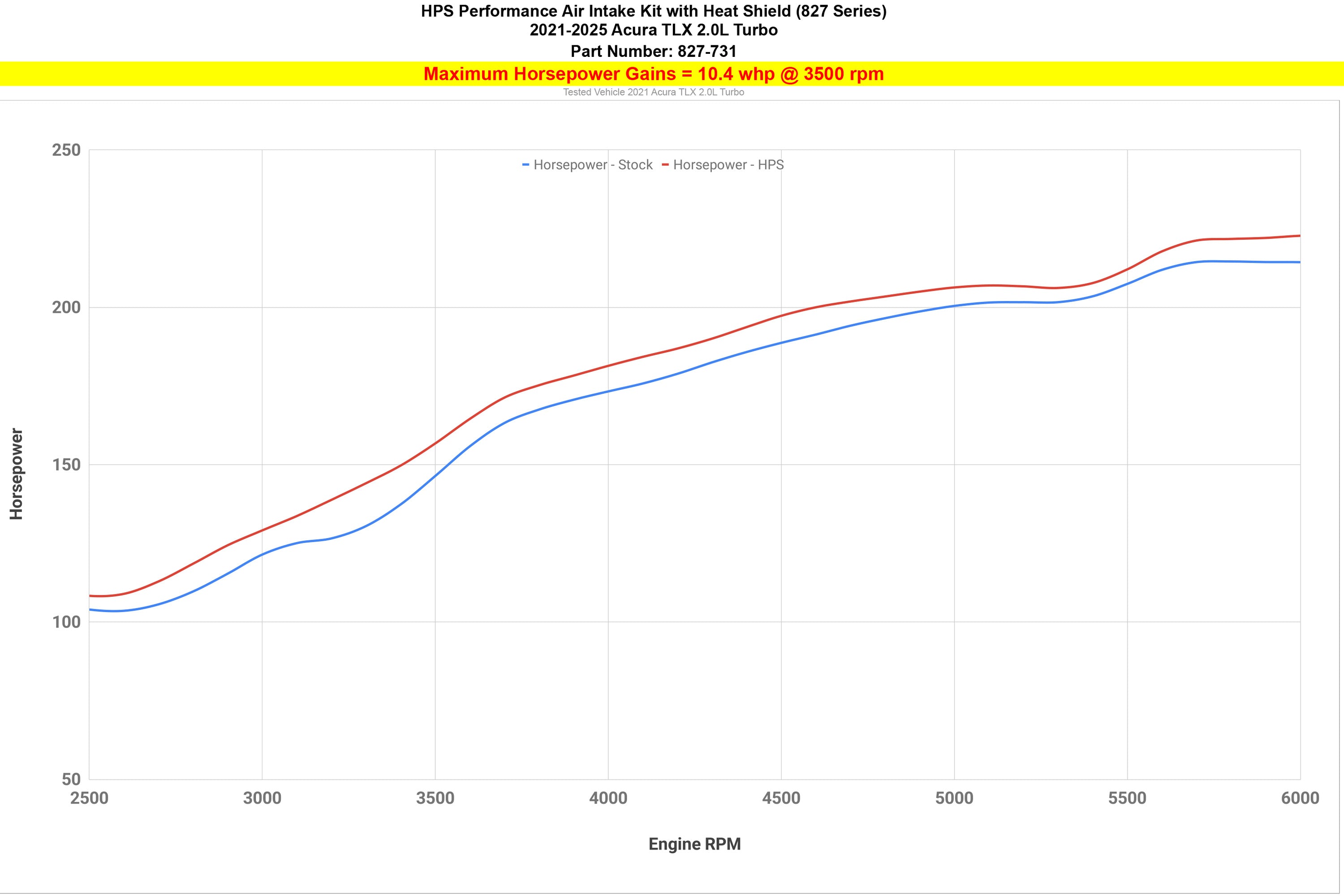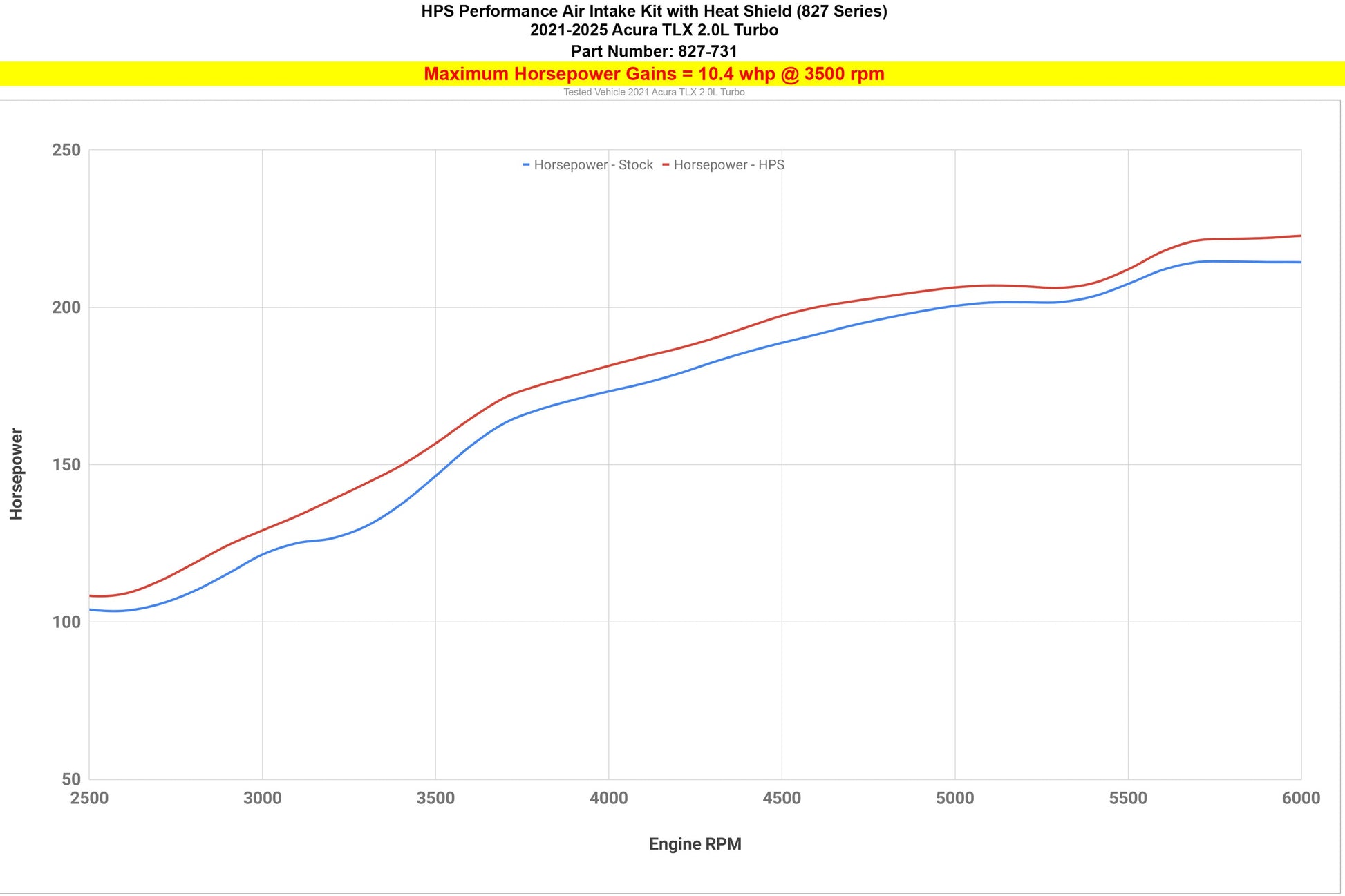 This HPS Performance Air Intake Kit replaces the restrictive stock intake with a 3.25” mandrel-bent aluminum intake tube to improve air delivery to the engine. The stock air filter and air filter housing is replaced with a high-performance reusable high-flow cotton air filter and a specially designed steel heat shield to direct air flow to your intake. The heat shield features a specially designed pattern to allow the turbocharged engine to be heard under acceleration while retaining the effectiveness of the heat shield. Improve acceleration and throttle response with dyno-proven gains of 10.4 horsepower and 15.6 lb-ft. of torque at the lower end of the powerband. This additional power optimizes your vehicle's performance within the RPM range that your vehicle normally operates for a better overall driving experience. Engineered to perform even under the toughest driving conditions, HPS Performance Air Intake Kits are built with durable high-temperature resistant reinforced silicone couplers and 100% stainless steel embossed clamps. This kit is easy to install and only requires simple hand tools to complete without the need for additional modifications.