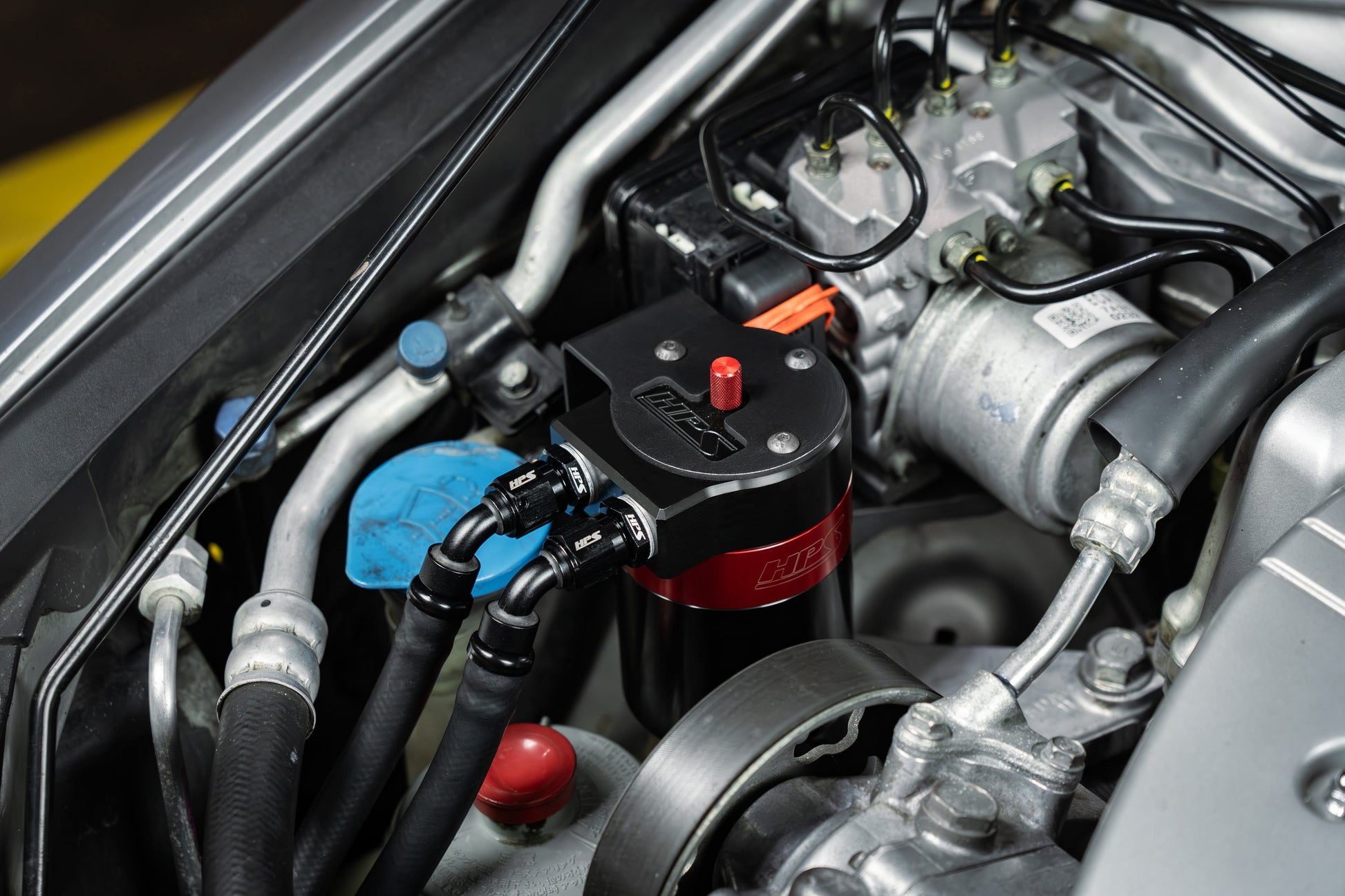 The HPS Performance Oil Catch Can is a game-changer for any vehicle enthusiast. By capturing harmful crankcase blow-by before it can wreak havoc on your engine, this high-quality catch can helps prevent carbon buildup on your intake valves, boosting engine efficiency and extending its lifespan. Its durable billet aluminum construction and generous 5-ounce capacity make it a low-maintenance choice, while the included dipstick and removable can with a 14mm hex facilitate easy monitoring and emptying. Installation is a breeze thanks to the custom-designed bracket and premium -6 AN reinforced rubber hoses and push-on fittings, ensuring a hassle-free setup. If you're looking to protect your engine and enhance performance, the HPS Performance Oil Catch Can is the must-have bolt-on accessory for your vehicle.