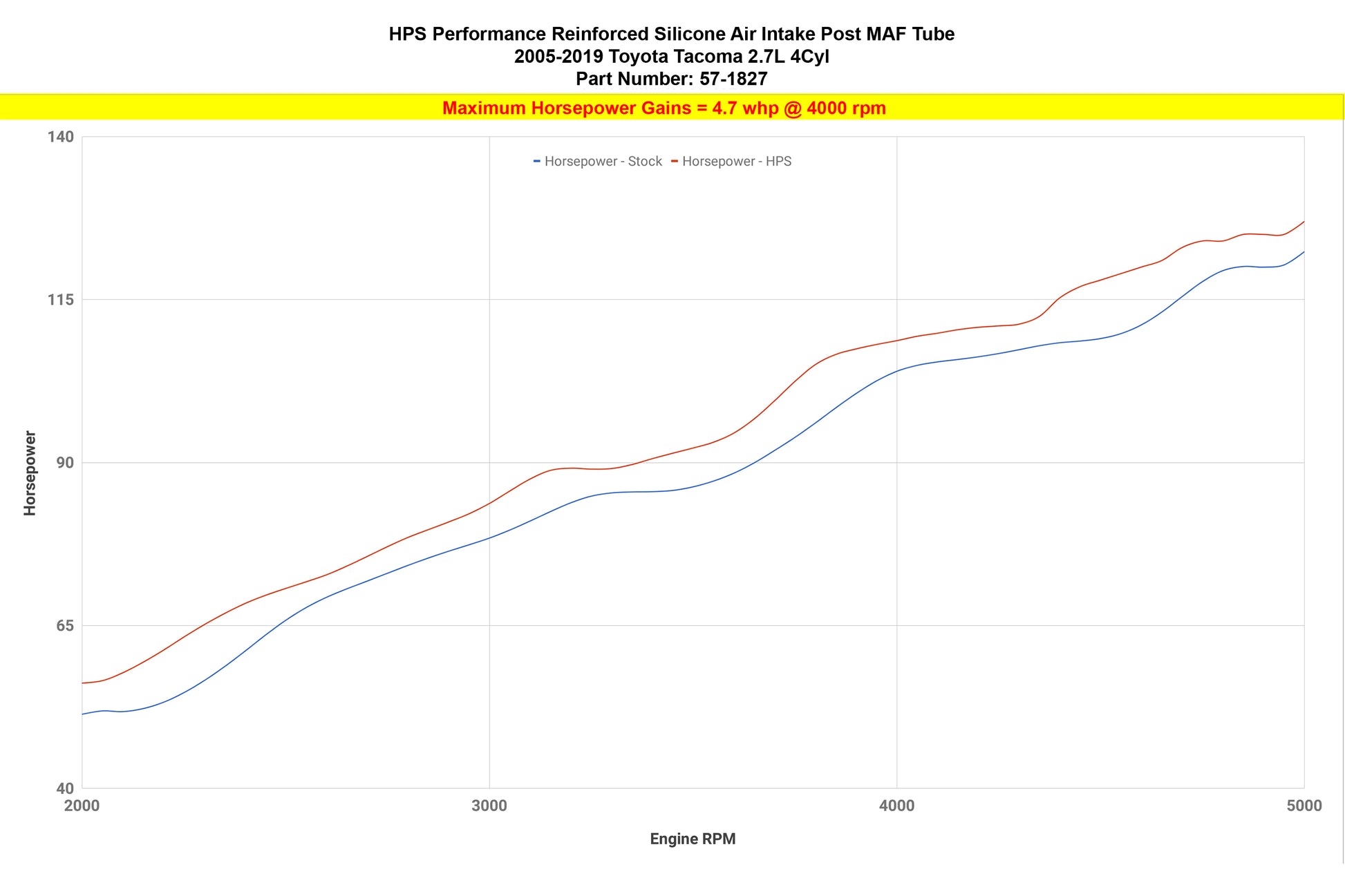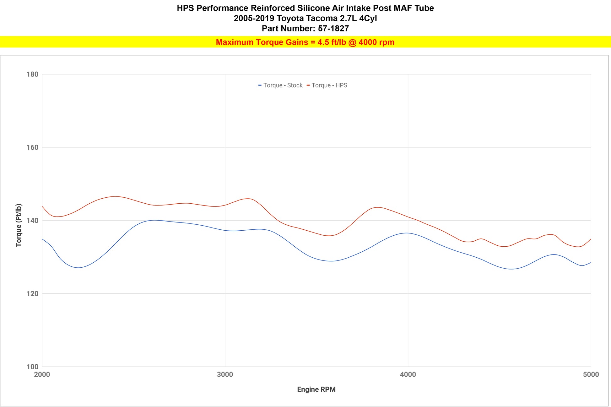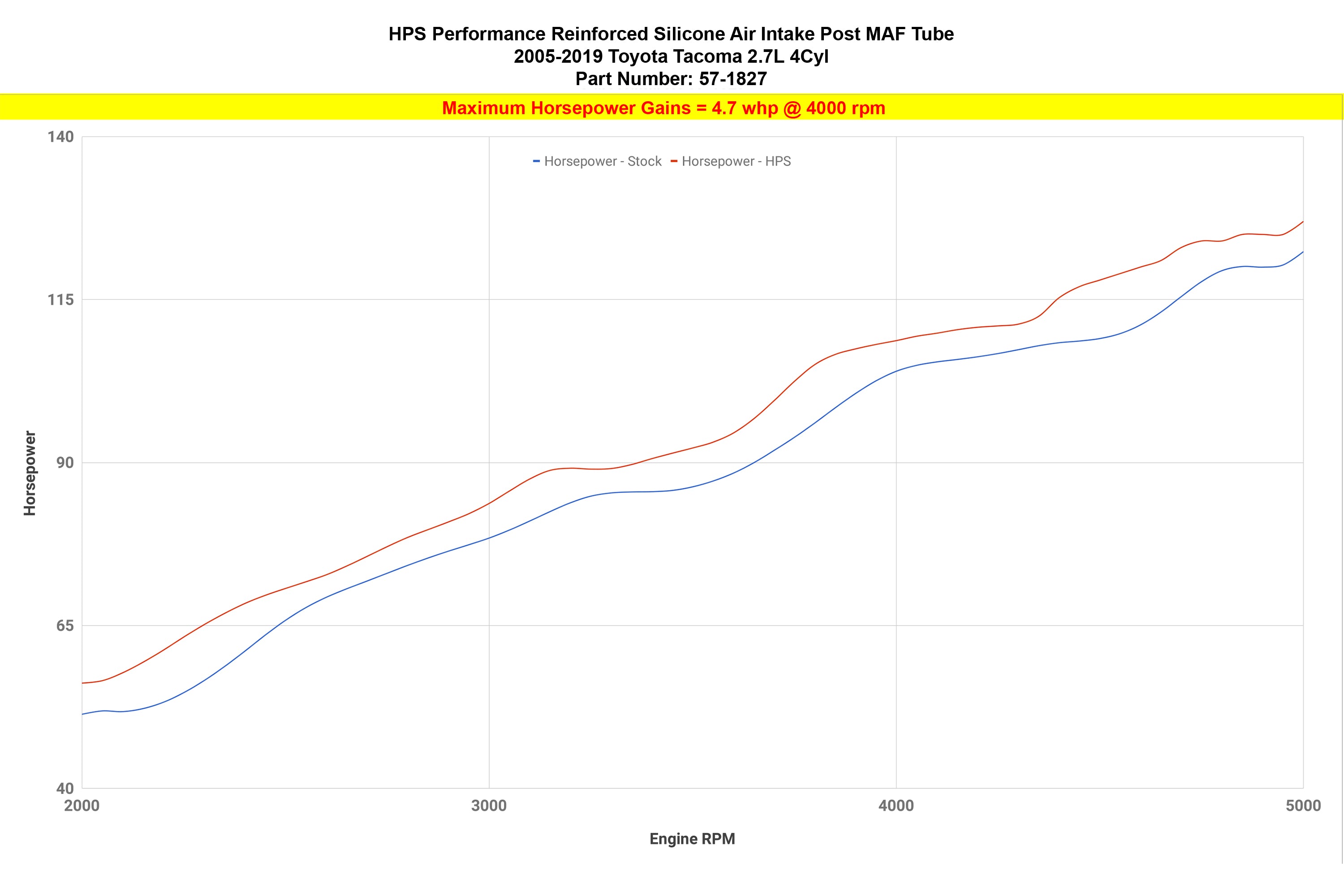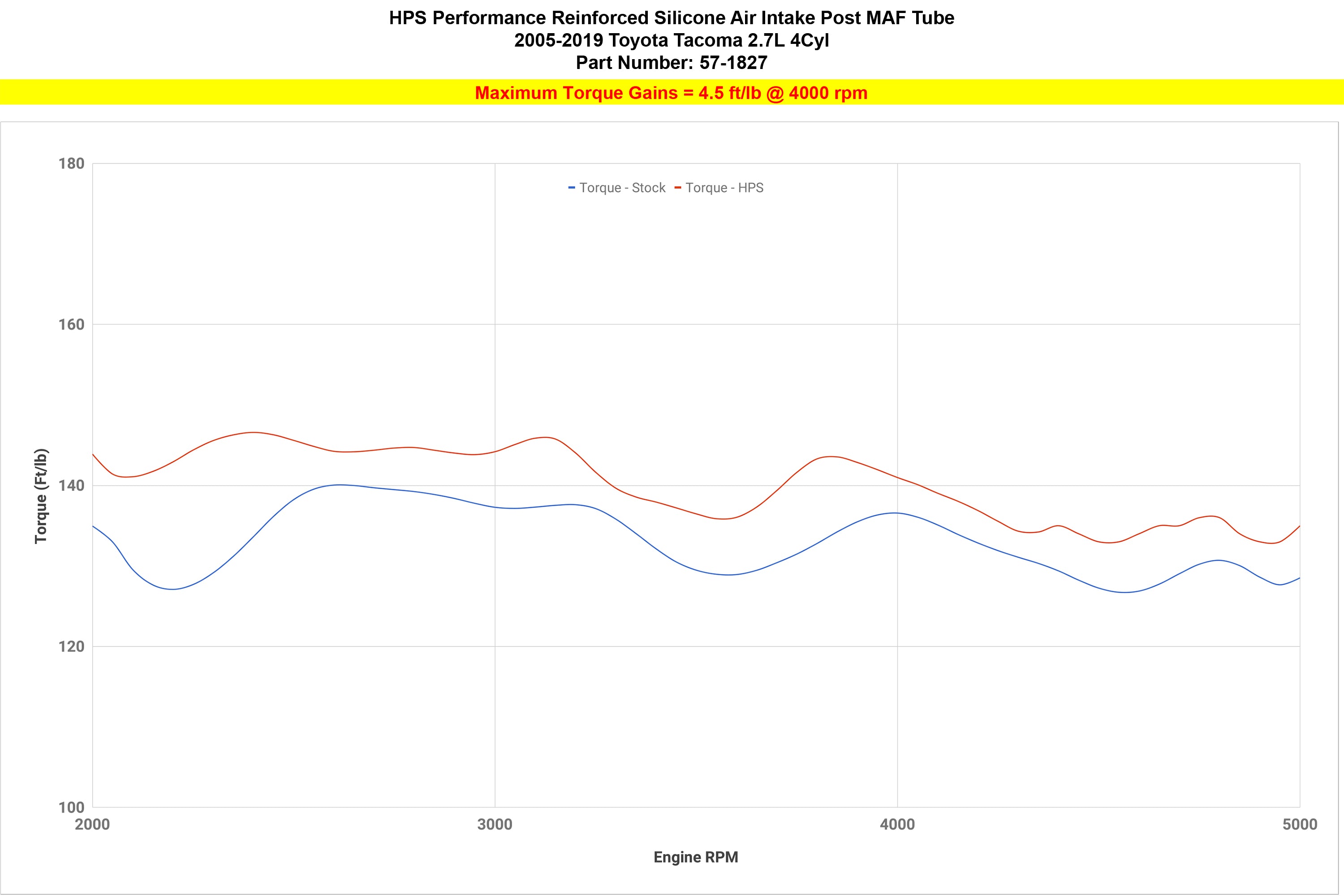 This HPS high temperature 4-ply reinforced silicone air intake hose kit replaces the restrictive stock OEM rubber air intake hose with high-heat resistant materials the meets or exceeds OE specifications for a maximum temperature rating of 350 degrees Fahrenheit. This intake provides smoother air flow to your engine by eliminating the accordion bellows present in the stock intake's design. Without any re-tuning, the HPS silicone air intake kit delivers dyno proven performance gains of 4.7 horsepower and 4.5 lb-ft of torque. This replacement upgrade includes industrial grade HPS 100% stainless steel embossed hose clamps. It also reduces heat soak, helping maintain optimal performance. This intake kit retains the use of the stock MAF and air filter housing, making it compatible with many intake snorkels on the market. No modifications to your vehicle are required to install this kit.