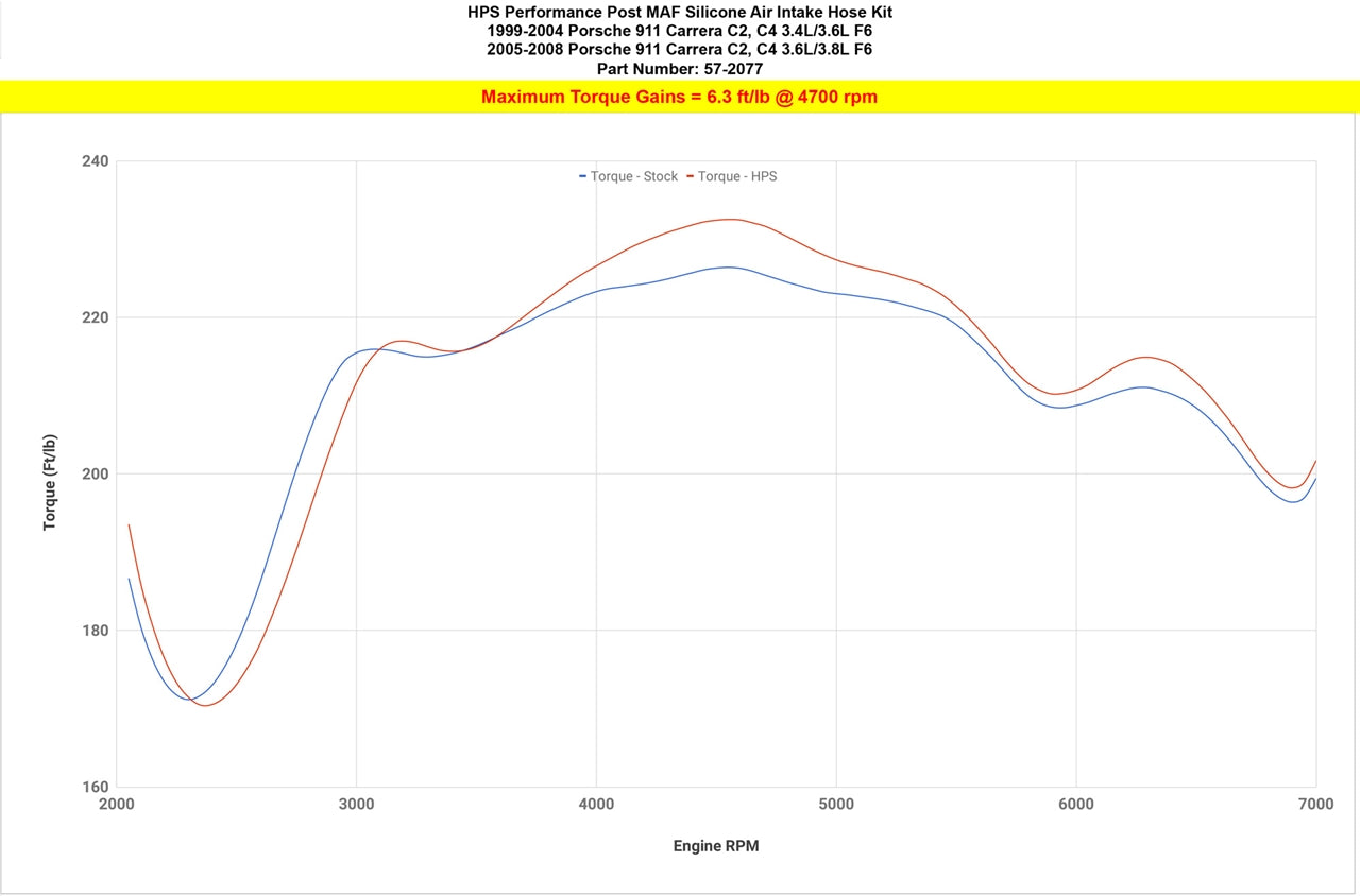 This HPS high temperature 4-ply reinforced silicone air intake hose kit replaces the restrictive stock OEM rubber air intake hose with high-heat resistant material which meets or exceeds OE specifications for a maximum temperature rating of 350 degrees Fahrenheit. Without any re-tuning, the HPS silicone air intake kit delivers dyno proven performance gains 5.6 horsepower and 6.3 lb-ft. of torque. This silicone intake kit retains the use of the stock MAF and air filter housing, minimizing the number of parts to change, keeping the installation simple. This replacement upgrade includes HPS 100% stainless steel embossed hose clamps, fit for harshest road conditions. No modifications are required to install this kit. REMARK: Additional parts needed to install on Tiptronic and X51 models.