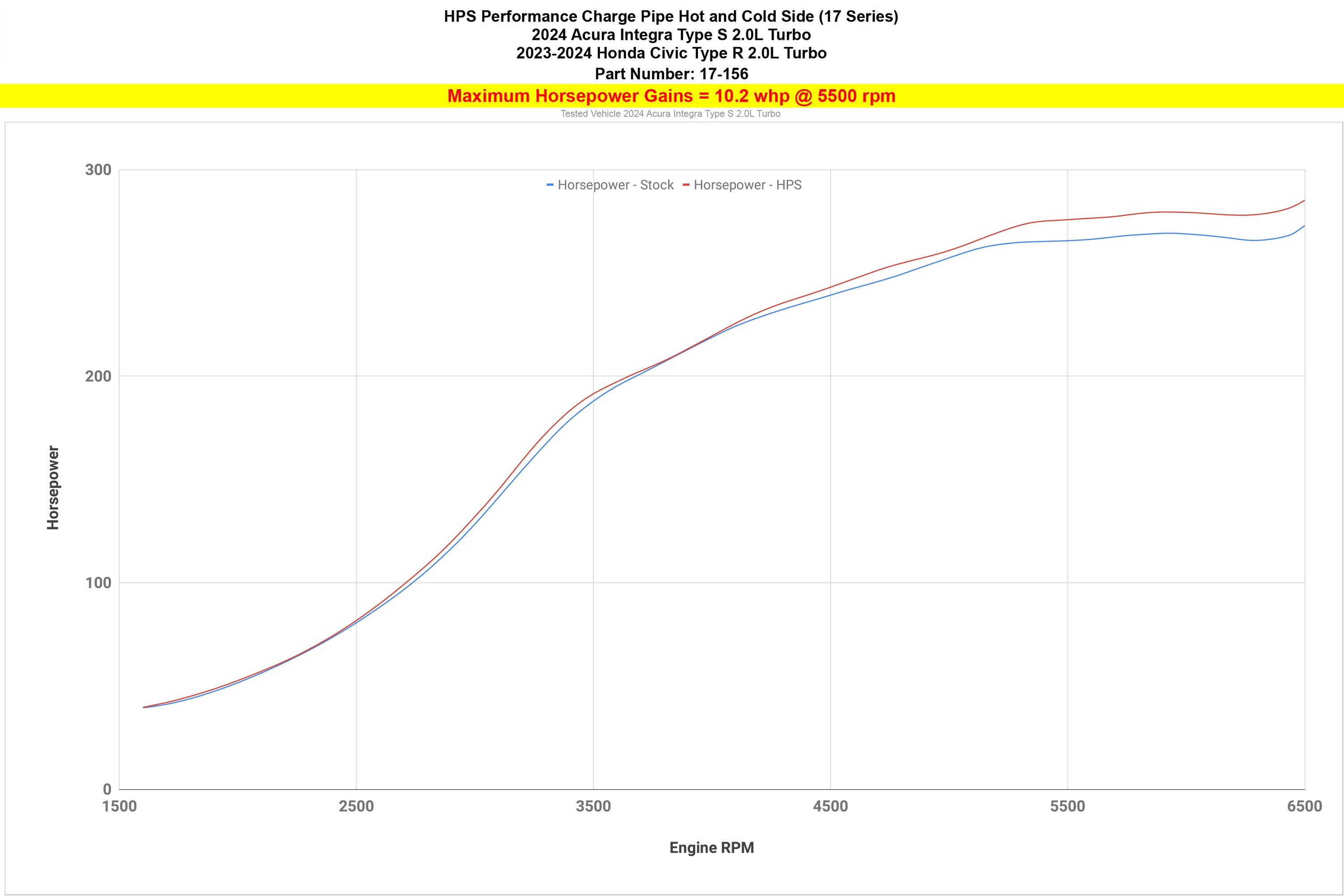 The HPS Performance Hot and Cold Side Charge Pipe Kit is the essential upgrade engineered to replace the factory charge pipe system, providing significant performance improvements for your vehicle. With a larger 2.25-inch diameter on the hot side and 2.5-inch diameter cold side pipes made from 6061 mandrel bent aluminum, the enhanced airflow and reduced restriction increases the engine output by 10.2 horsepower and 9.8 lb-ft of torque, resulting in improved throttle response, acceleration, and overall engine performance. The HPS Performance Charge Pipe Kit is made with reliability in mind. This kit utilizes 4-ply high temperature and oil resistant silicone couplers and stainless steel clamps to deliver dependable performance under the most demanding driving conditions. The charge pipe features a 1/8" NPT port on the lower cold-side pipe to facilitate the installation of additional sensors, injectors, or solenoids. In addition to the enhanced performance, the HPS Performance Charge Pipe Kit also offers improved reliability. The included 4-ply reinforced oil resistant silicone couplers and embossed stainless steel hose clamps ensure a secure and leak-free connection. These couplers are designed to handle high boost pressures, resist degradation from oil, and provide excellent heat resistance while the stainless steel hose clamps offer a tight fit that prevents slipping or loosening. This kit is designed to be a direct bolt-on replacement, making installation straightforward and hassle-free. All the necessary hardware and components are included, ensuring a proper and secure fit. With its larger diameter charge pipes, durable construction, and included oil resistant silicone couplers and stainless steel hose clamps, this kit offers improved throttle response, increased horsepower, and a more exhilarating drive with the HPS Performance Charge Pipe Kit installed in your vehicle.