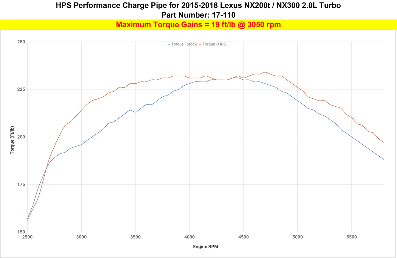 HPS black intercooler charge pipe hot side is a simple yet effective performance upgrade for 2018 Lexus NX300 2.0L Turbo oem restrictive plastic intercooler piping. Made from lightweight mandrel bent aluminum tubing, the charge pipe kit has less bend and better air flow compared to the oem restrictive design. The bead rolled pipe ends prevent couplers from popping off under boost. The intercooler piping kit optimize and smooth out the air flow, increase horsepower +15 Whp , torque +19 Ft/lbs and improve throttle response without re-tuning the ECU. Fits 2018 Lexus NX300 2.0L Turbo.