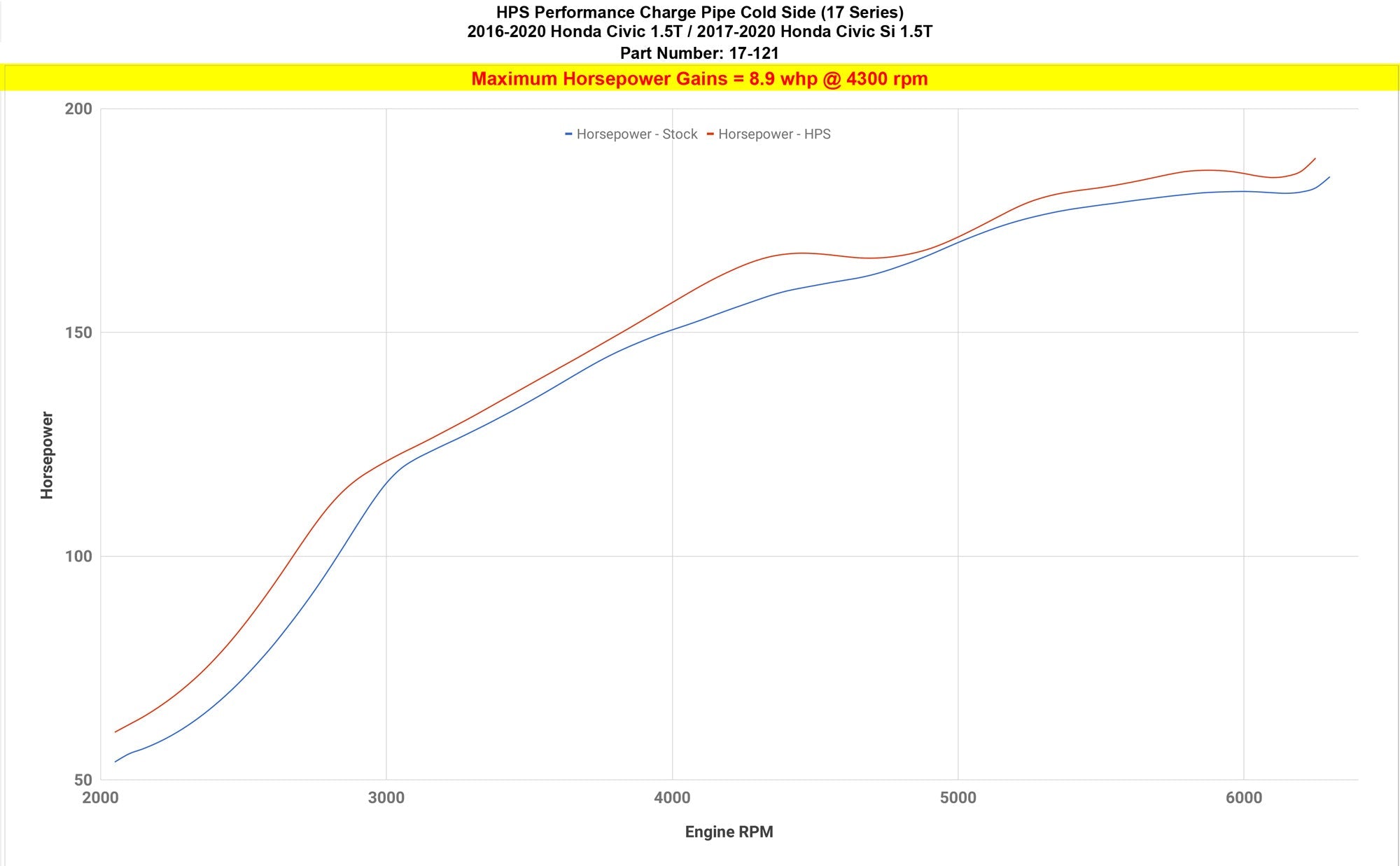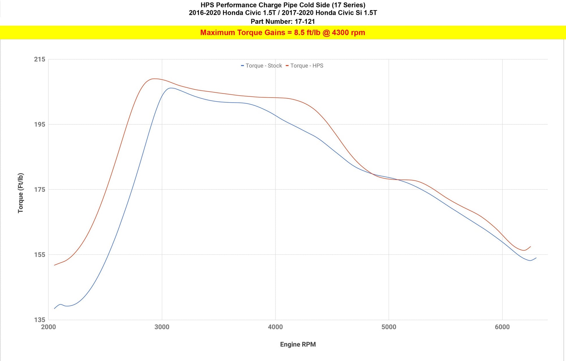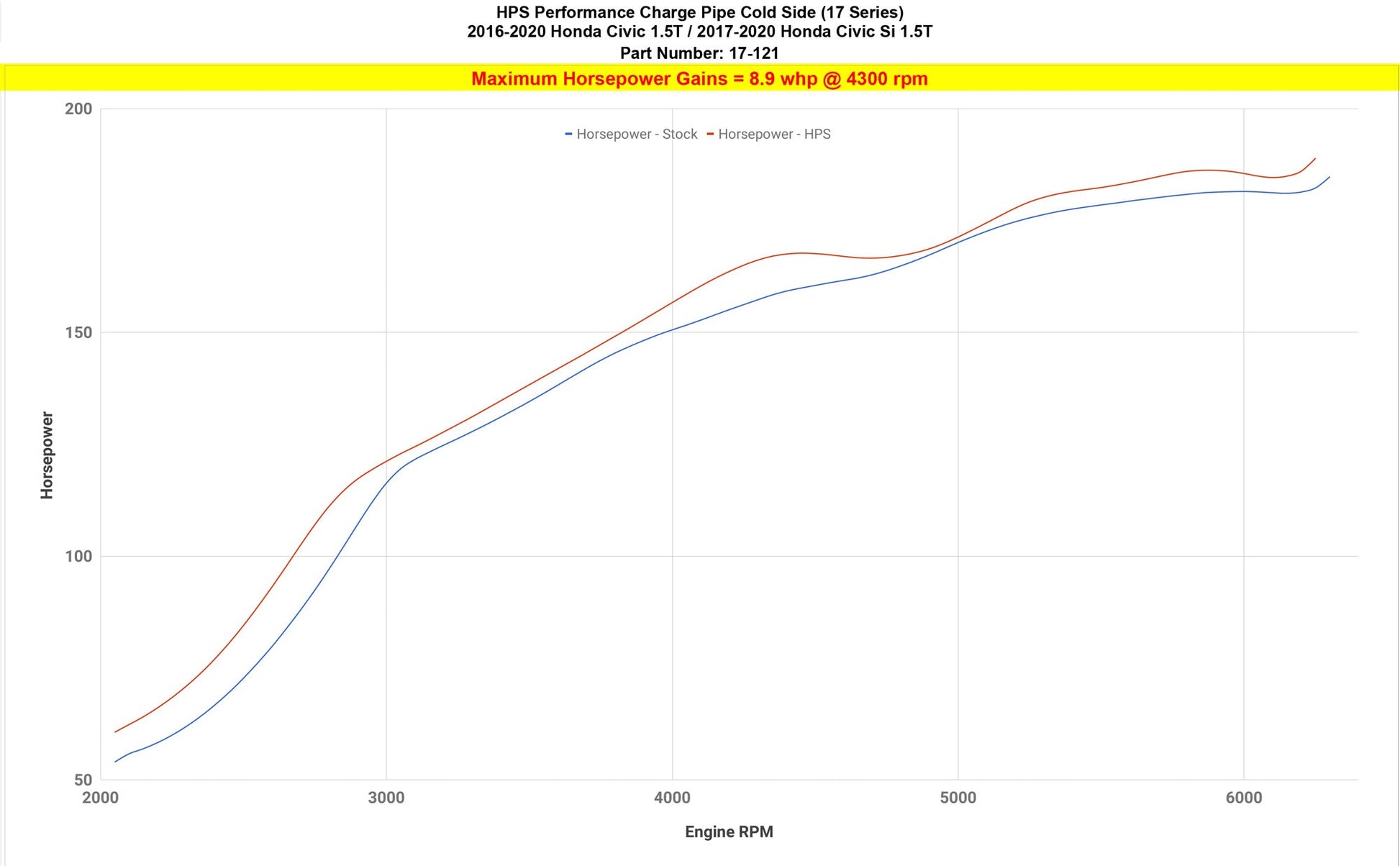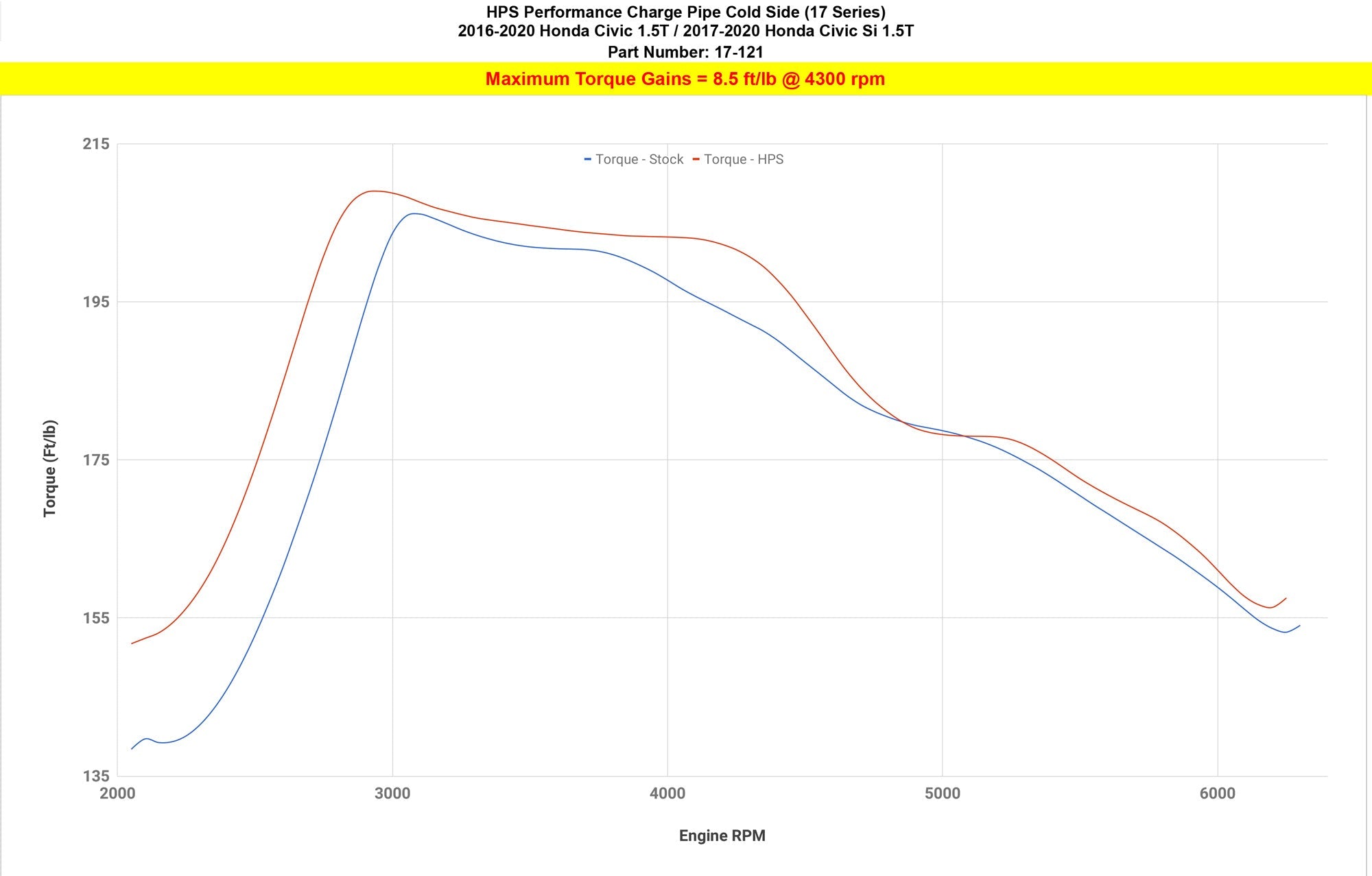Improve throttle response and acceleration with this HPS Performance Cold Side Upper Intercooler Pipe Kit. Air flow is optimized to generate an additional 8.9 horsepower and 8.5 lb-ft. of torque without re-tuning the ECU. This kit replaces the stock plastic upper cold side charge pipe and rubber boots with a 2.5" custom mandrel-bent 16-gauge 6061 aluminum tube, our signature HPS 4-ply reinforced silicone hoses, and 100% stainless steel embossed clamps. We utilize this design to increase the air volume and allow for easier installation. Reduce the risk of boost leaks and get the most out of your turbocharged vehicle.
