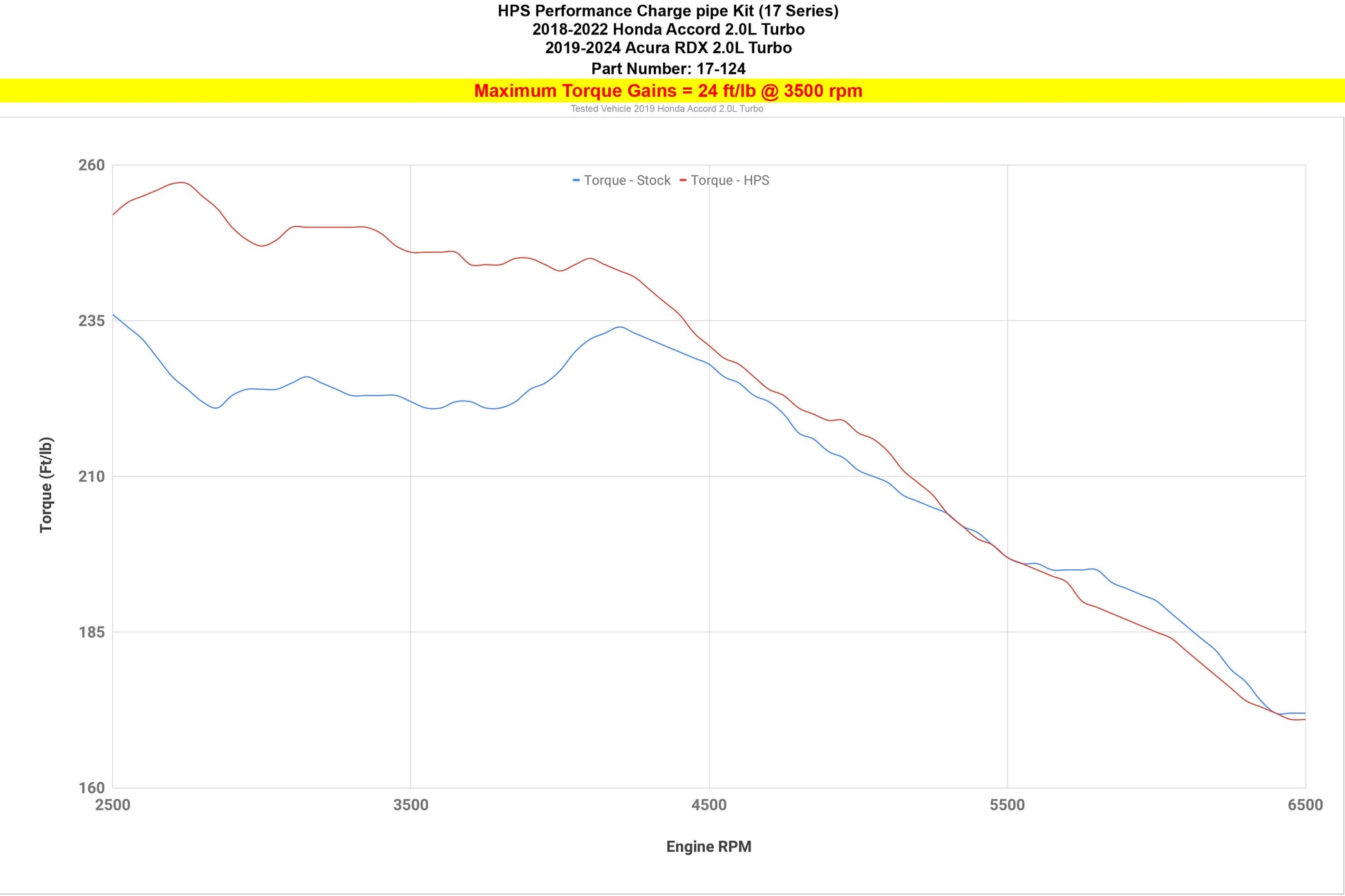 Improve throttle response and acceleration with this HPS Performance Cold Side Upper Charge Pipe Kit. Air flow is optimized to generate an additional 16 horsepower and 24 lb-ft. of torque without re-tuning the ECU. This kit replaces the stock plastic upper cold side charge pipe and rubber boots with a 2.5" custom mandrel-bent 16-gauge 6061 aluminum tube, our signature HPS 4-ply reinforced silicone hoses, and 100% stainless steel embossed clamps. We utilize this design to increase the air volume and allow for easier installation. Reduce the risk of boost leaks and get the most out of your turbocharged vehicle.