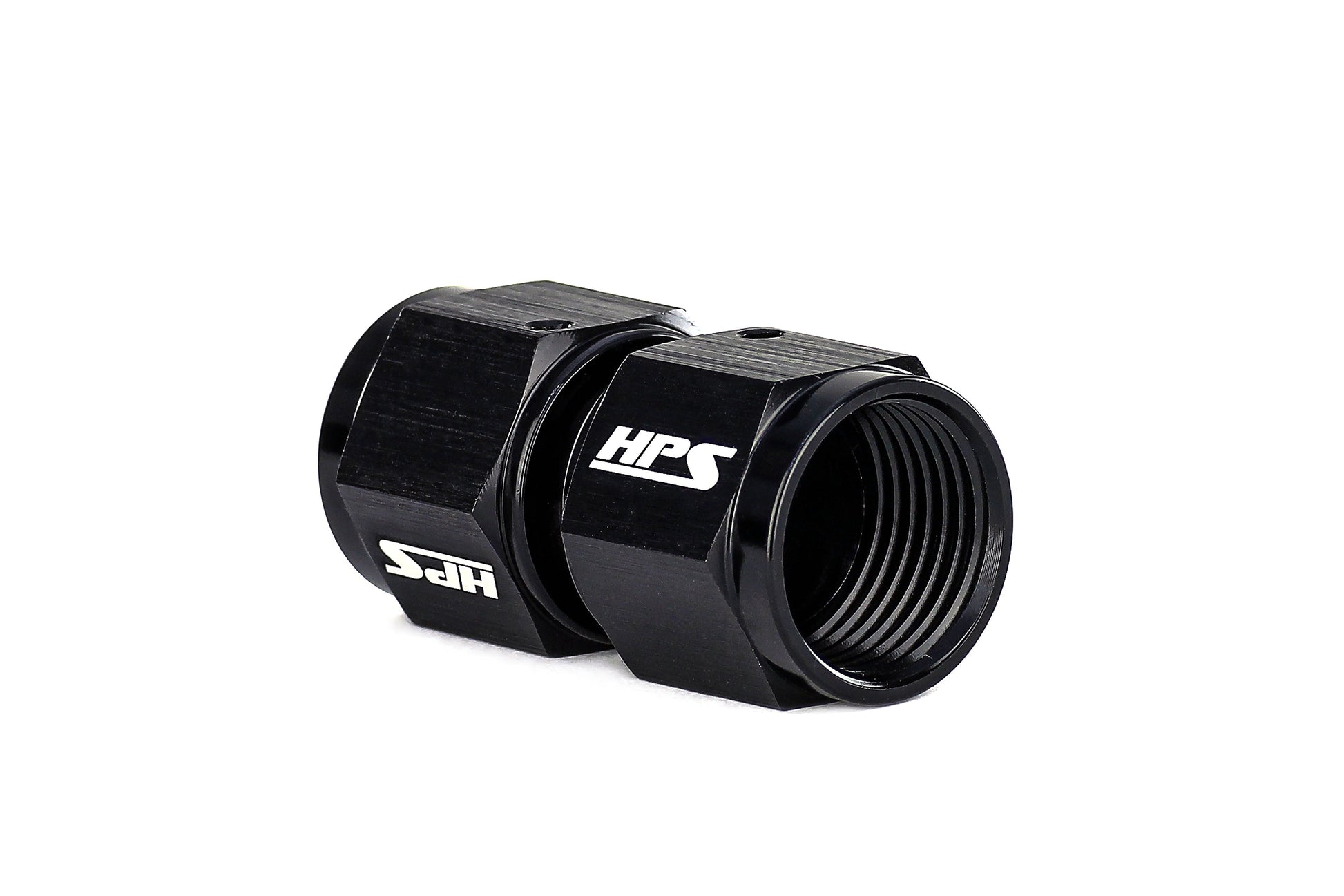 Swivel couplers are an excellent option where space is limited and hoses can't be used. This female to female coupling swivels independently for easy installation. Made from 6061 aluminum and anodized in black for durable, corrosion resistant finish. Compatible with HPS 150, 250, and 350 Series Fittings and suitable for use with air, water, coolant, oil, and fuel.