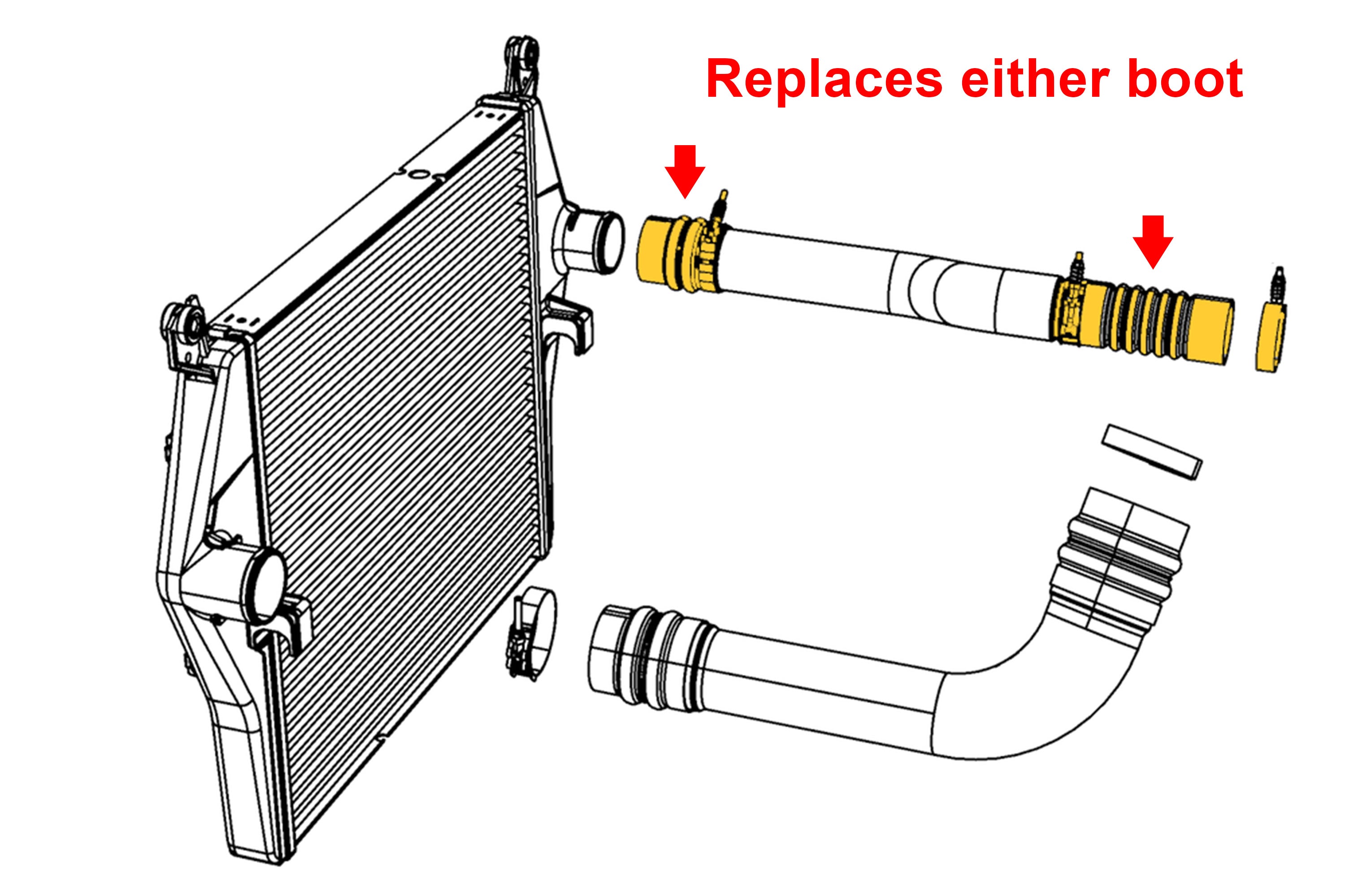 Direct replacement upgrade for an old or damaged OEM turbocharger intercooler boot.