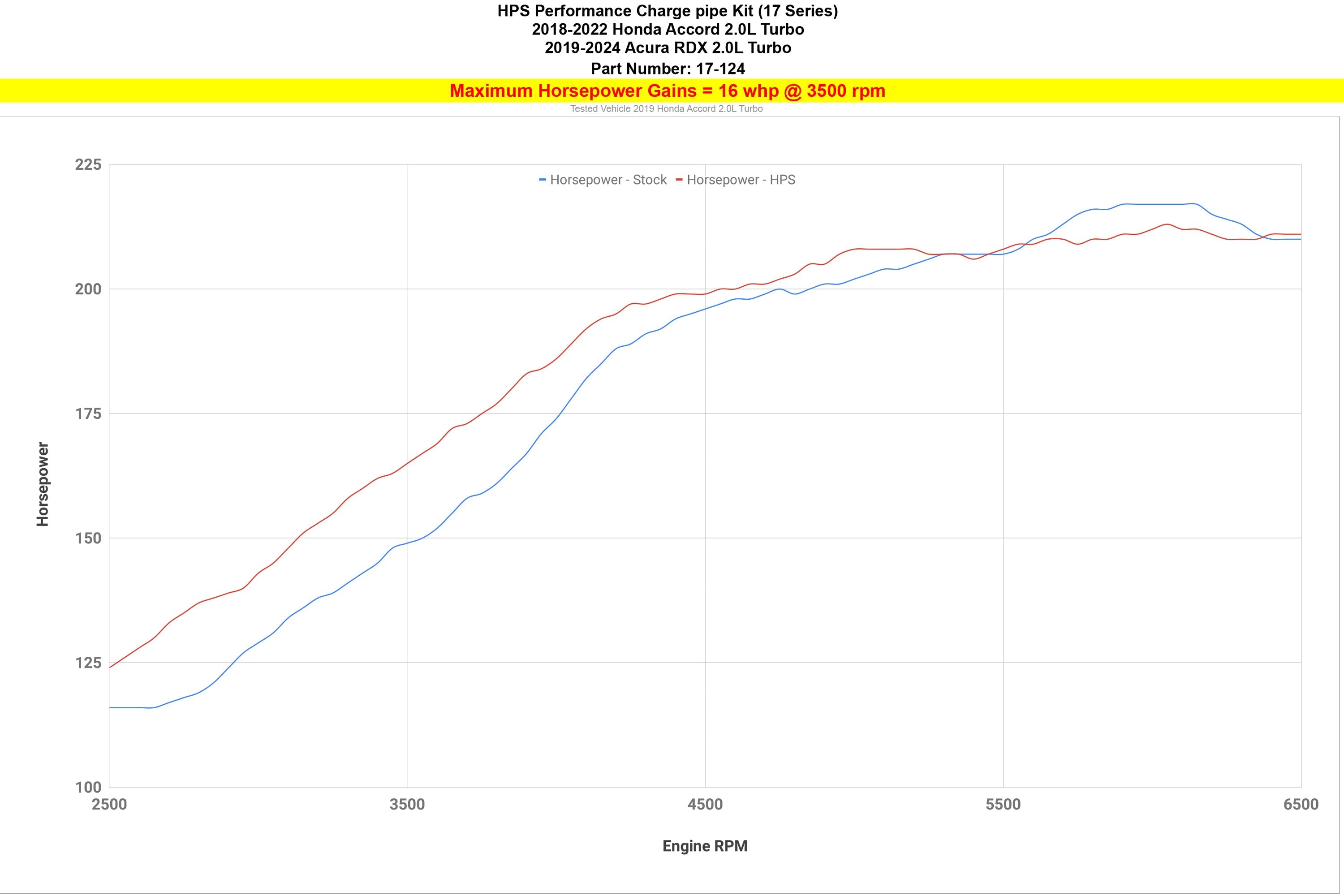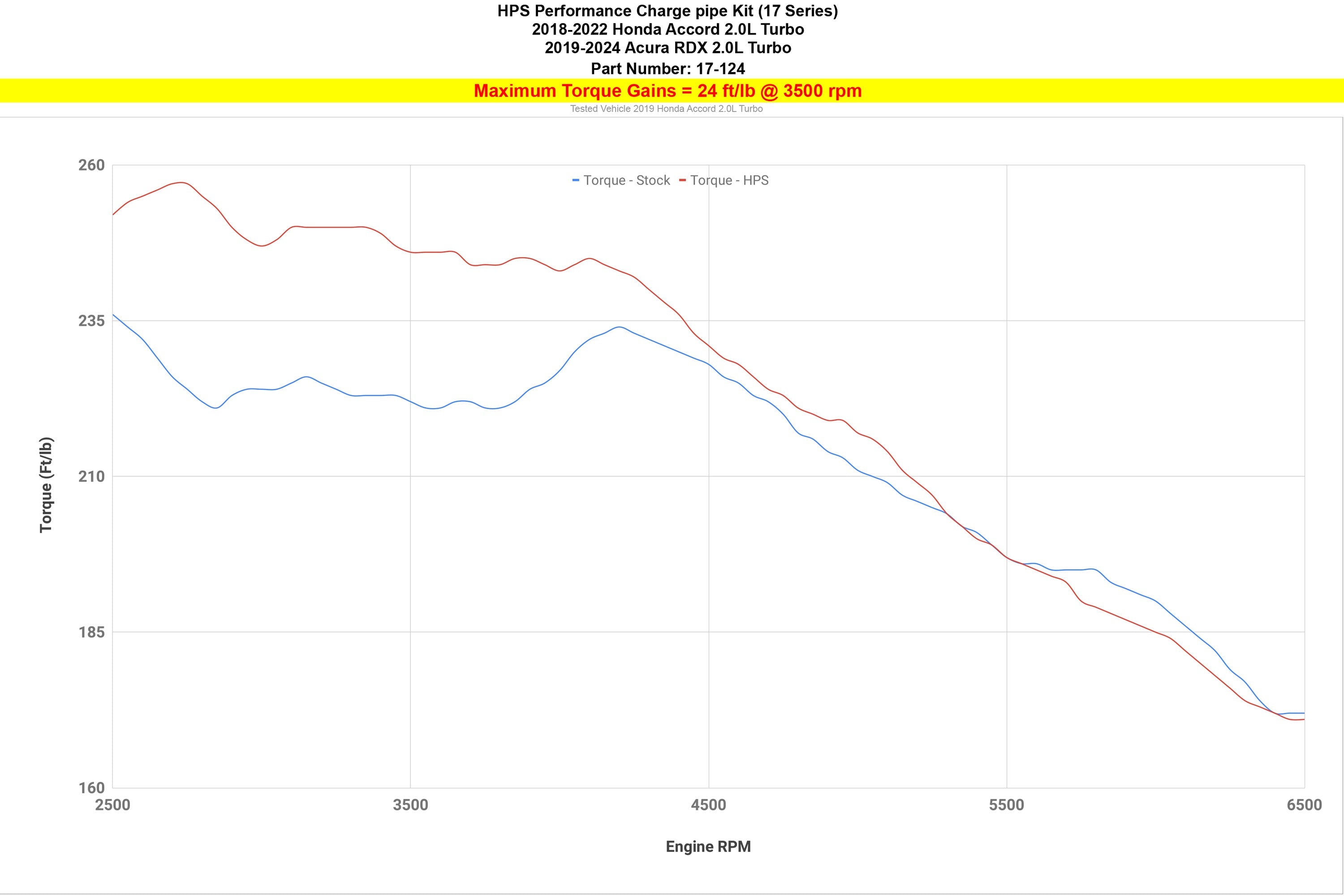 Improve throttle response and acceleration with this HPS Performance Cold Side Upper Charge Pipe Kit. Air flow is optimized to generate an additional 16 horsepower and 24 lb-ft. of torque without re-tuning the ECU. This kit replaces the stock plastic upper cold side charge pipe and rubber boots with a 2.5" custom mandrel-bent 16-gauge 6061 aluminum tube, our signature HPS 4-ply reinforced silicone hoses, and 100% stainless steel embossed clamps. We utilize this design to increase the air volume and allow for easier installation. Reduce the risk of boost leaks and get the most out of your turbocharged vehicle.