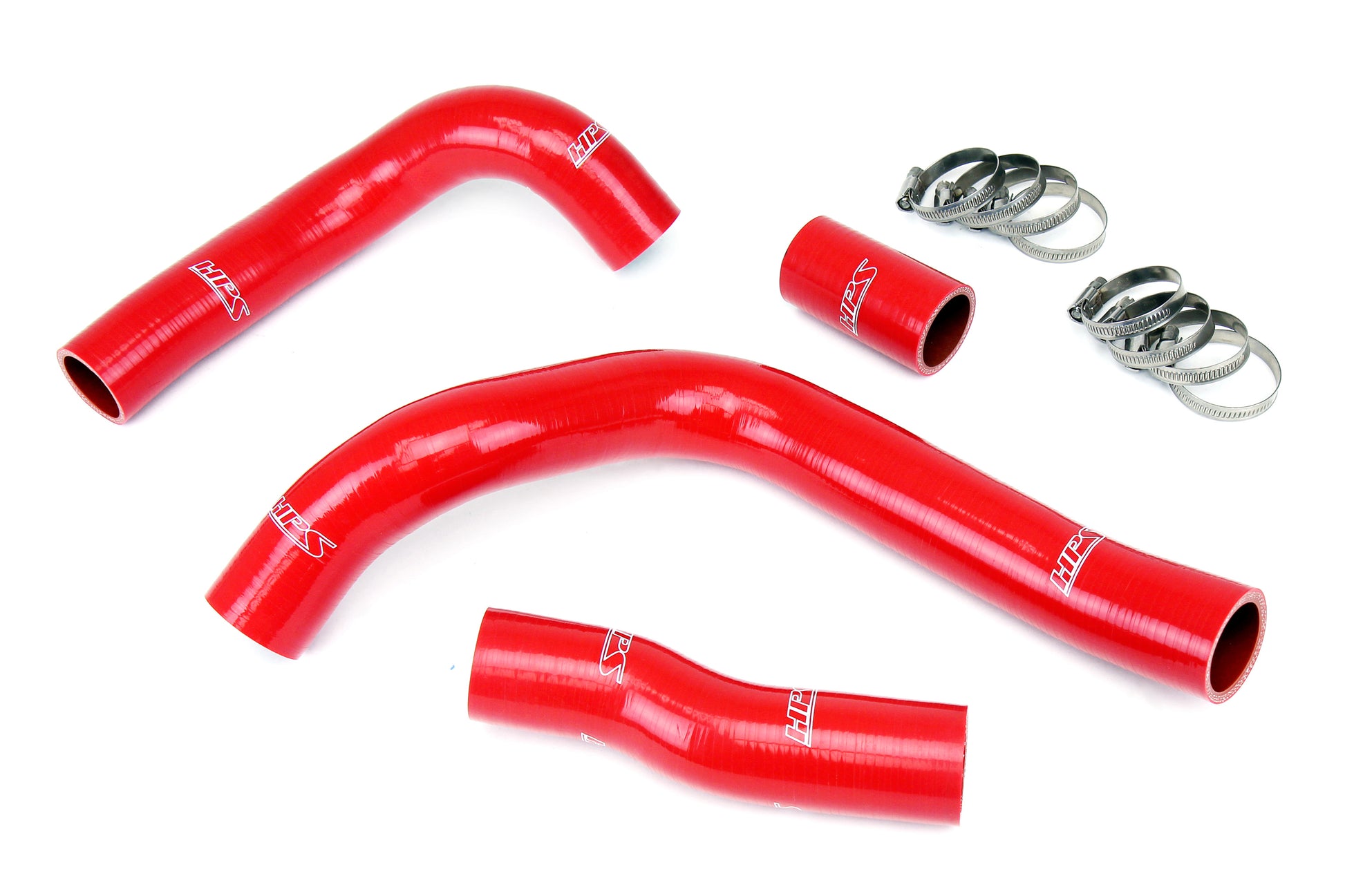 The HPS High Temp 3-ply Reinforced Silicone Radiator Coolant Hose Kit is designed to replace stock OEM rubber upper and lower radiator hoses which can eventually weaken over time, leading to premature failure. With premium quality silicone and racing inspired design, this silicone hose kit can withstand the harsh high temperature and high pressure operating conditions of the engine yet still maintain peak efficiency during competition or daily driving. HPS silicone hose kits have all the correct bends and sizes for a perfect fit replacement for your OEM rubber coolant hoses. Compared to the universal hoses you can get from the local auto store, HPS silicone hose kits are much easier to work with. Maximum temperature rating: 350 degrees Fahrenheit. 100% stainless steel clamps are included for easy installation.