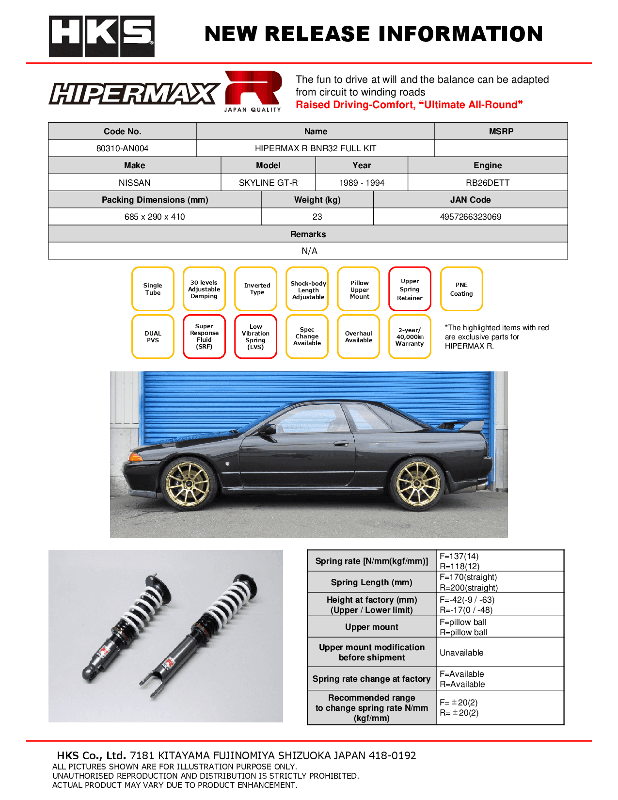 HKS Hipermax R Coilover Kit 1989-1994 Nissan Skyline GT-R (BNR32)