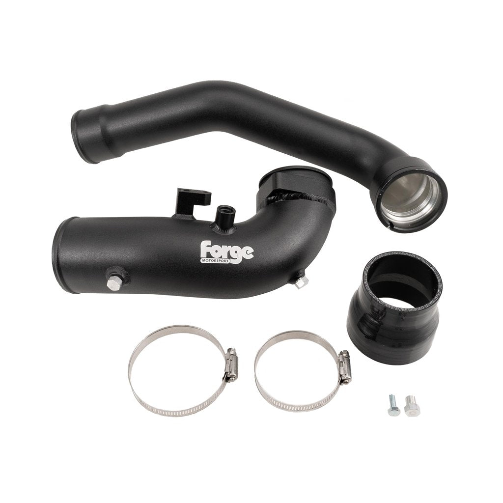 The Forge free-flowing charge pipe kit will increase flow and improve the reliability of your B58 engine from Supra. These high-quality aluminium pipes are a direct replacement and will fit in place of the OEM plastic pipe.