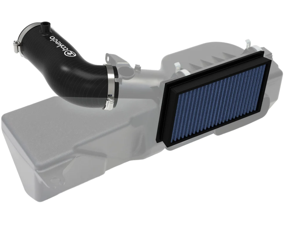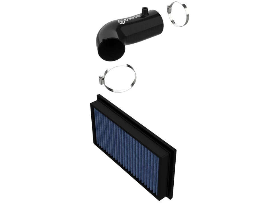 This filter features five layers of pre-oiled cotton gauze media to provide maximum performance. Its progressive layering allows the filter to flow at high levels even when dirty. This media is perfect for street and/or track use. Pro 5R filters are easily recharged with aFe POWER CLEANER and blue air filter oil. Constructed of 3-ply reinforced silicone, this intake tube is resistant to cracking and hi-temp conditions. With a smooth interior surface, this tube upgrade is engineered to increase horsepower, torque and airflow by reducing turbulence. Stainless-steel clamps for strength and durability.