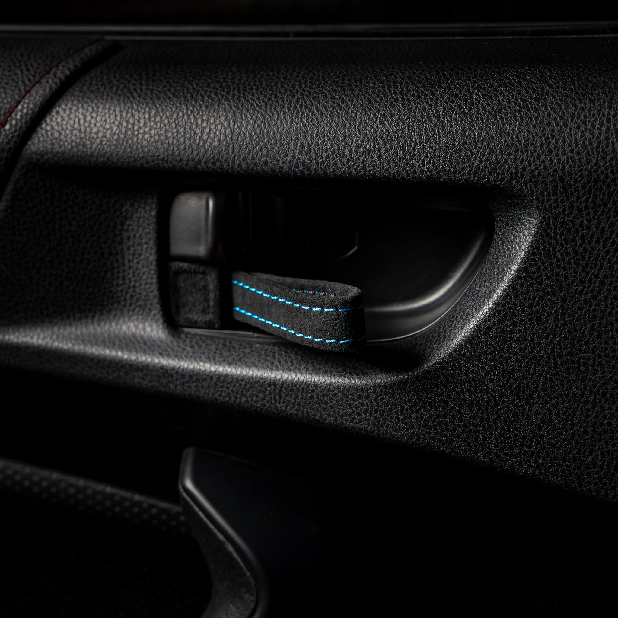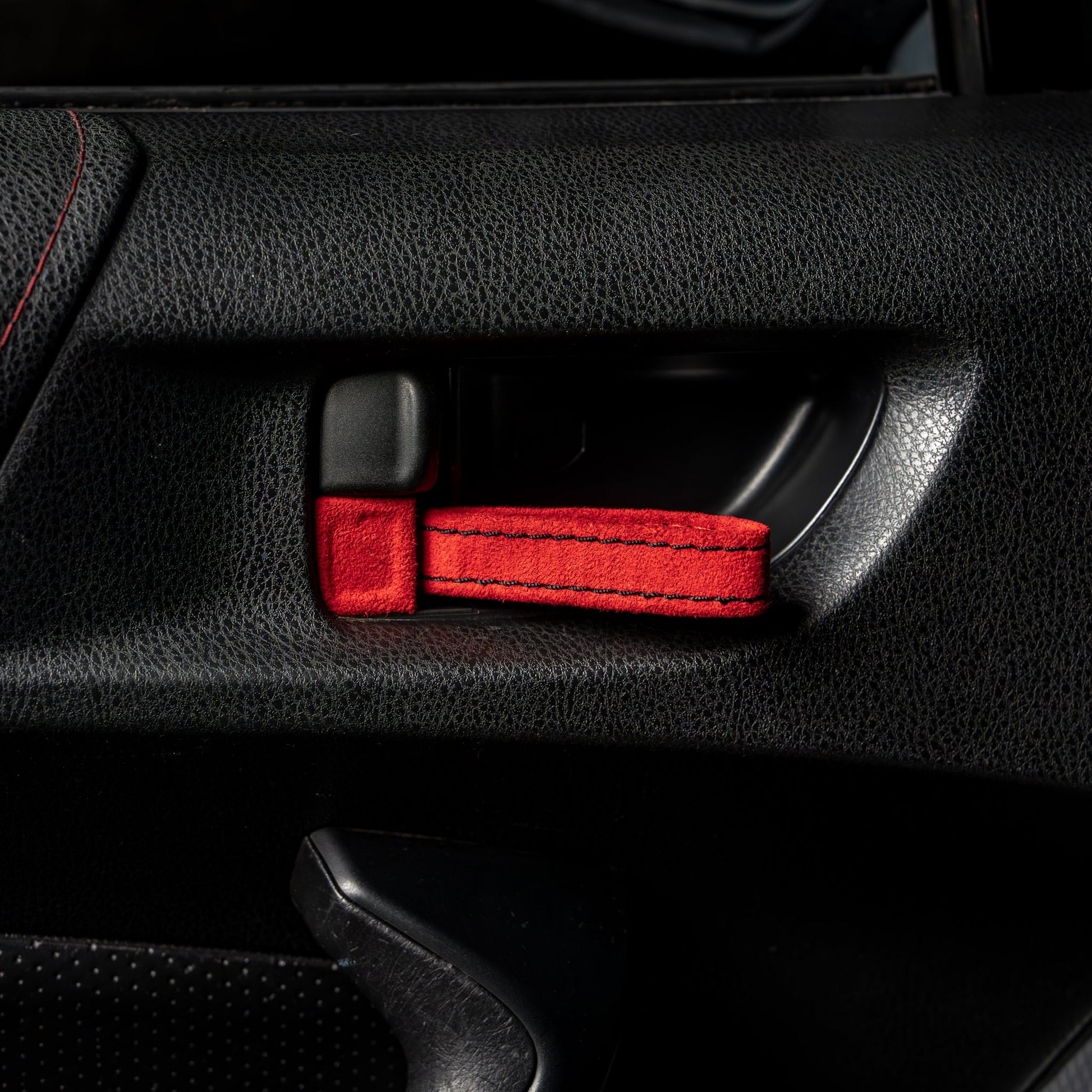 Our Alcantara Door Pull Straps are custom-engineered to replace the bulky factory door handles in your car. Designed with motorsport minimalism and premium materials, they’re the perfect blend of function, form, and flair.