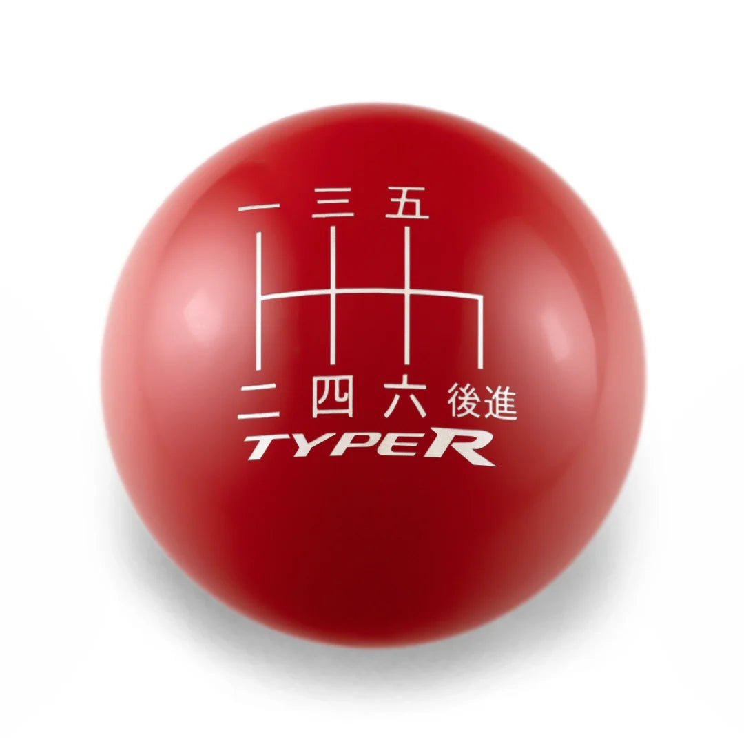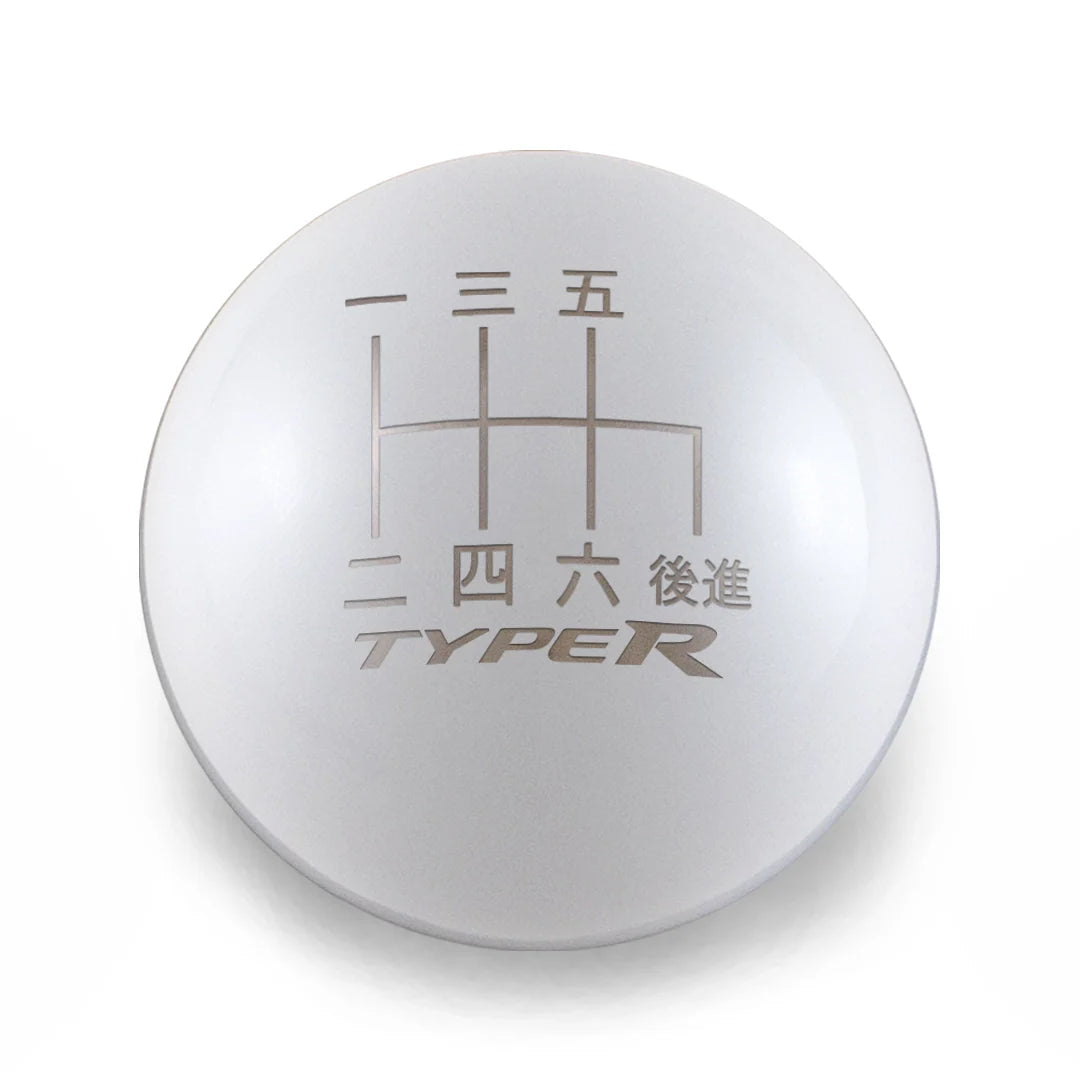 - Silver laser-engraved 6-speed Japanese shift pattern + Type R logo