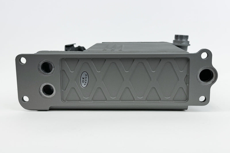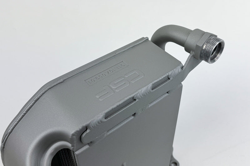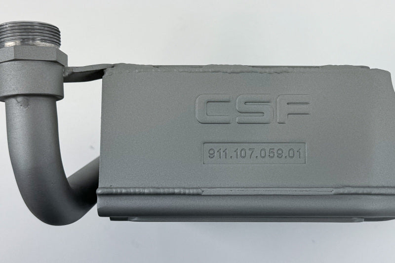 CSF understands Porsche purists want to keep an OEM look even when upgrading the performance and reliability of their 914s. This was a driving factor behind many of the cosmetic features of the oil cooler. The top of the cooler is stamped with the OE Part Number just below the CSF logo. In addition, the cooler comes in a Titanium color Thermal Heat Dispersion Cerakote finish. This advanced finish is durable, improves heat dissipation, is anti-corrosive, and offers a very classy OEM+ look to the cooler. A modern upgrade over the original. No details were overlooked in the design of the CSF cooler. The curvature of the case matches the original precisely and includes all the fine details. The spark plug aperture matches up perfectly with the valve cover for a perfect fit. Built into the machined base plate are small but important details such as the raised mounting pads and strengthening ridges.