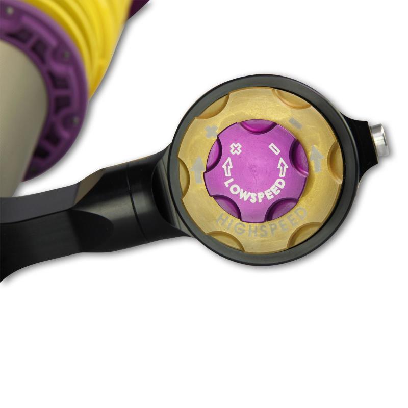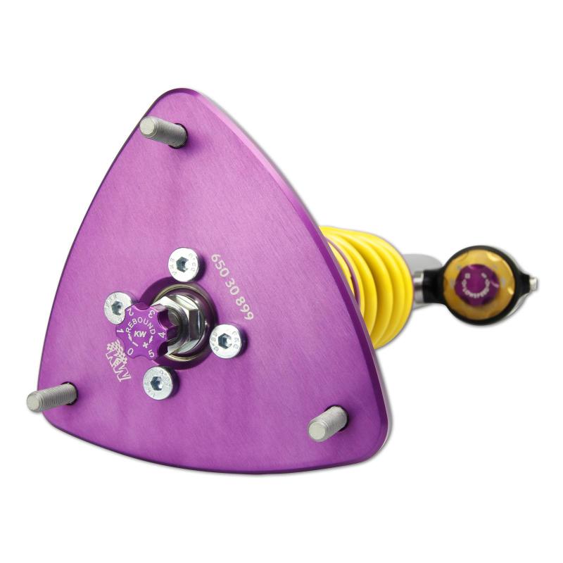 Using the Nordschleife as it's testing grounds and the 7-post rig, KW developed it's V4 Clubsport coilover kit. Wheel loads, vehicle weight and chassis reinforcements (increased body stiffness) can all be taken into consideration with Adjustment -capabilities of the V4 Clubsport. The KW Clubsport coilovers combine KW's high-end racing technology -with maintenance-free KW OEM quality components. Designed to provide you the ideal product to utilize the full potential of your sports car during autocross, track days, high performance drivers education (HPDE) courses, club racing, and is tested rigorously on race tracks such as the Nurburgring Nordschleife. Race teams rely on KW's racing expertise and experience for their vehicle setup. This same championship winning pedigree is mirrored in the development of each one of the KW Clubsport coilover systems. Similar to the KW Competition suspension used in international motorsports, the KW V4 Clubsport coilover kit allows fine tuning of the compression damping separately in the low-speed and high-speed range. The click adjustments of the TVCLH-A valve technology -ake for easy Adjustment -directly on the reservoir. You can modify the low-speed compression damping with 6 precise clicks with the purple low speed Adjustment -ial and directly beneath it the golden Adjustment -heel provides an additional 14 precise clicks of high speed compression adjustment. In addition, the TVR-A technology -provides 16 clicks to noticeably adjust the rebound damping independently of the compression damping. If you would like to adjust the KW V4 Clubsport coilover kit it can easily be adjusted for more comfort or to an alternative setup for a new race track. The KW V4 Clubsport benefits from the same motorsports technology -hat has proven its endurance with multiple overall wins at the ADAC Zurich 24h Nurburgring race.