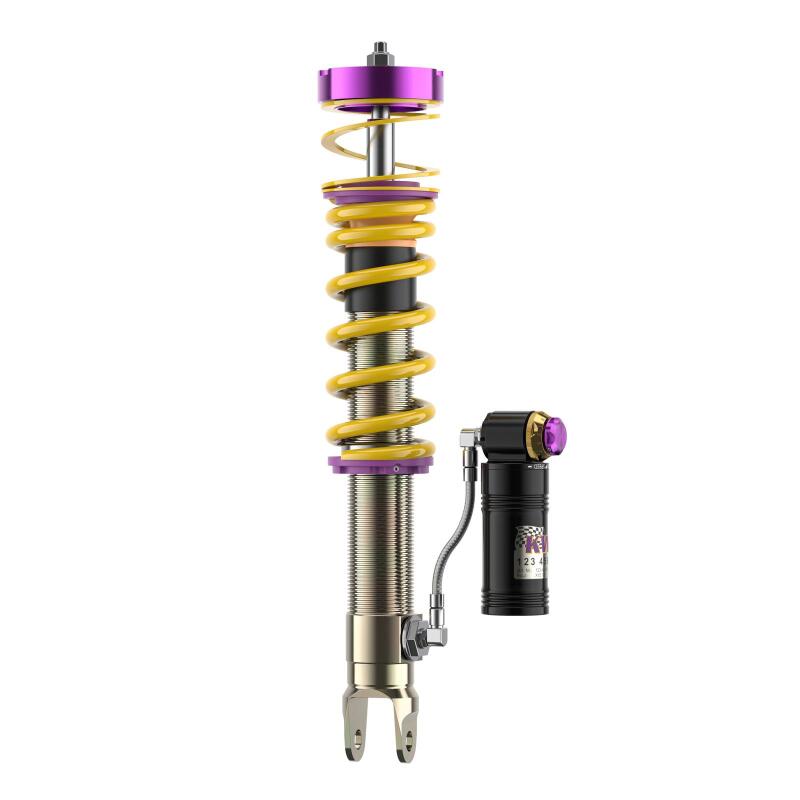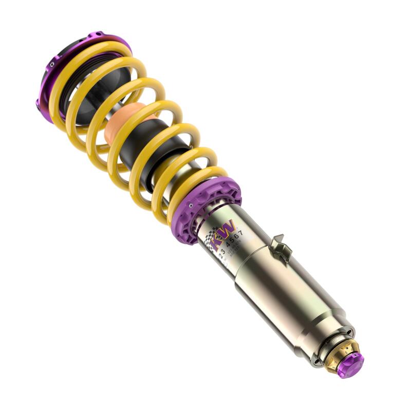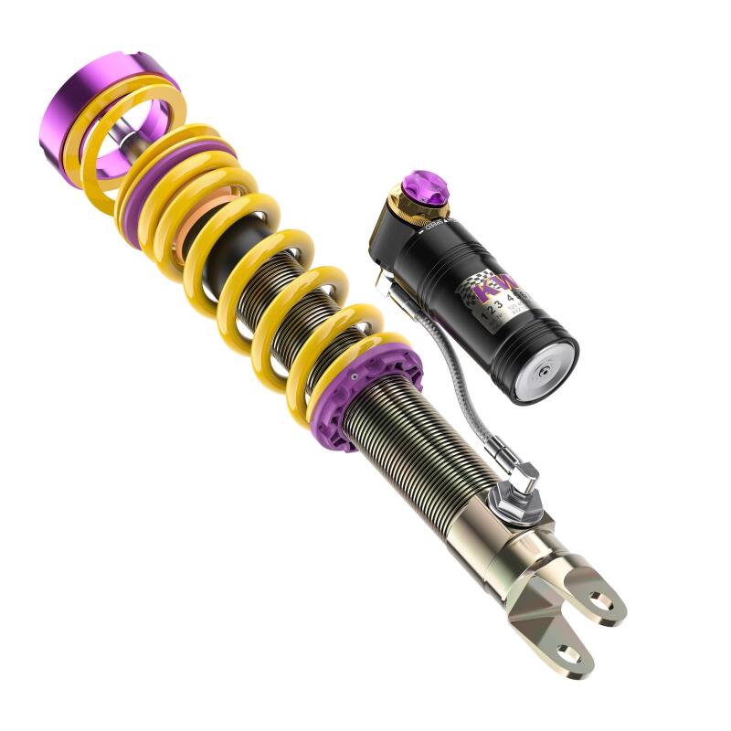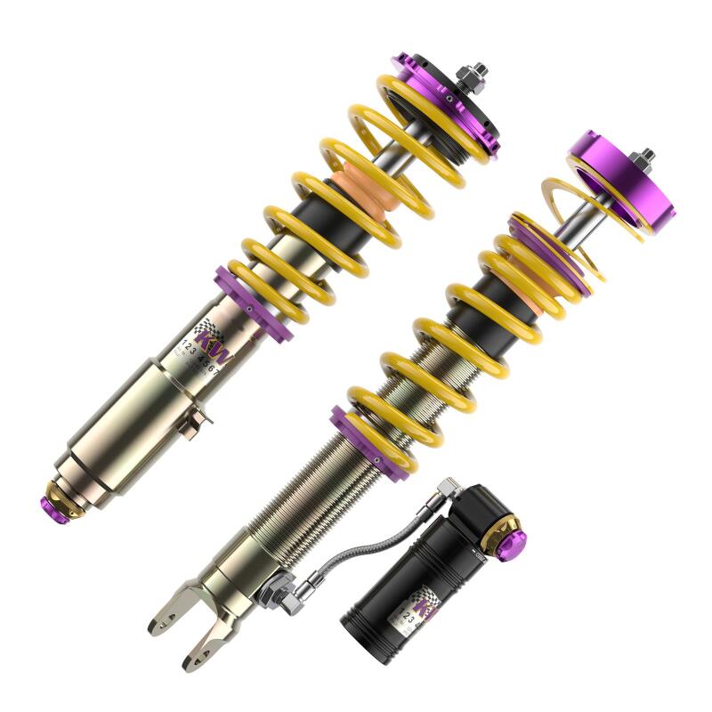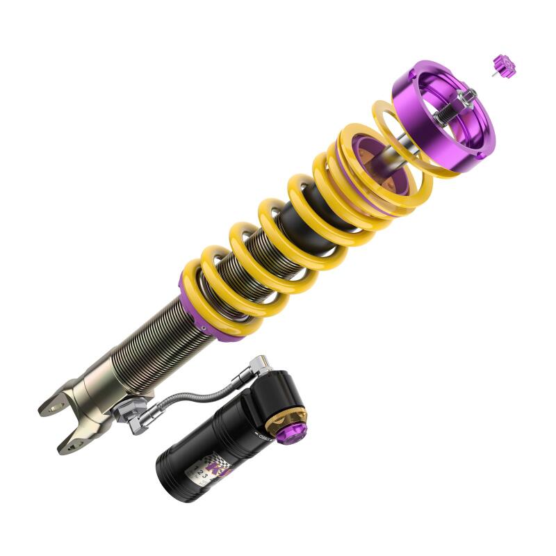 KW V4 coilovers are a combination of our innovative, race proven technology, as well as decades of experience tuning high end sports cars, super sedans and exotics such as the Audi R8, Audi RS6, BMW M5, Lamborghini Aventador LP 750-4 SV, Dodge Charger SRT Hellcat, Mercedes AMG GT and more. In addition to the individually adjustable ride height the KW V4 coilover kit allows an independent Adjustment -f the rebound damping as well as the low-speed and high-speed compression damping. Each KW V4 coilover kit is delivered with a vehicle-specific comfort setting and with the integrated Adjustment -controls the damping characteristics can be set quickly and intuitively transformed to an optimized performance setup. The 3-way adjustable high-performance dampers in the KW V4 coilover kits feature independent Adjustment -f the rebound damping utilizing patented TVR-A technology, as well as the low speed and high speed compression damping utilizing TVCLH-A technology. The KW V4 coilovers are based upon successful race technology utilized by multiple overall winners of the ADAC Zurich 24h Nurburgring race. The new KW V4 coilovers are exclusively developed for select high-performance vehicles, which benefit greatly from the KW suspension technology -o improve their driving dynamics.