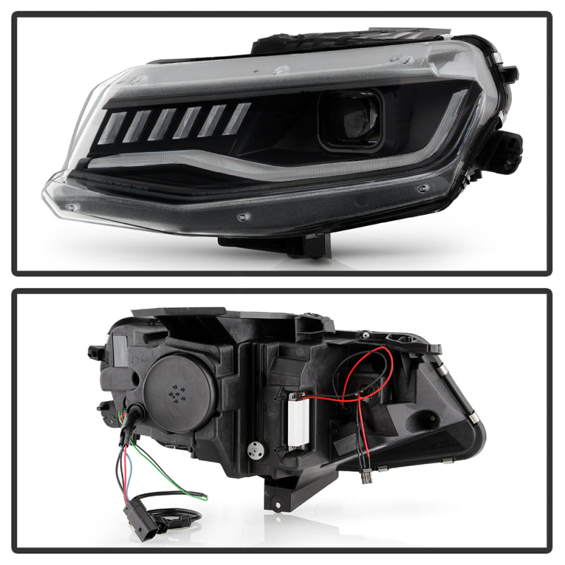 Spyder Chevy Camaro 16-18 Halogen Model Projector Headlights Black PRO-YD-CCAM16HALSI-SEQ-BK