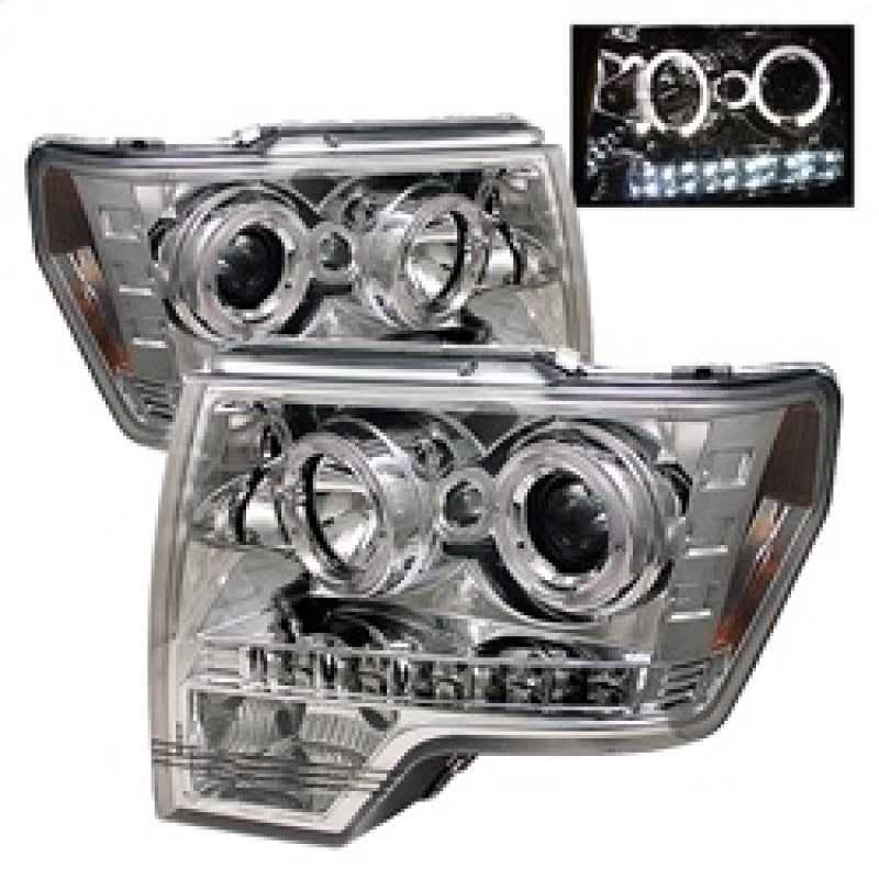 Spyder Ford F150 09-14 Projector Headlights Halogen Model- LED Halo LED Chrm PRO-YD-FF15009-HL-C