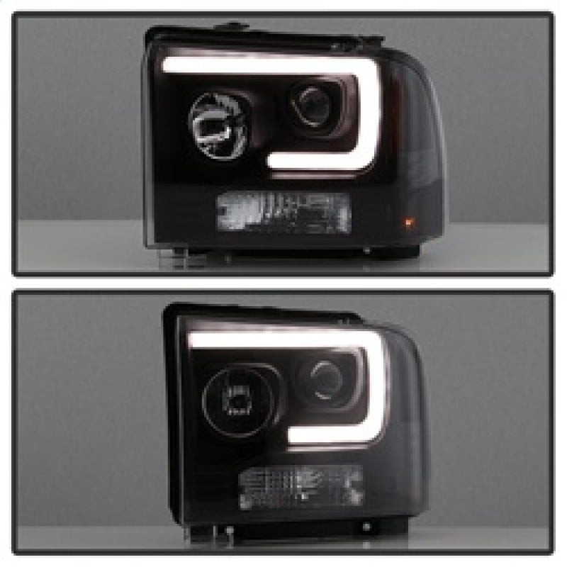Spyder Ford F250/350/450 05-07 Projector Headlights - Light Bar DRL LED - Black PRO-YD-FS05V2-LB-BK